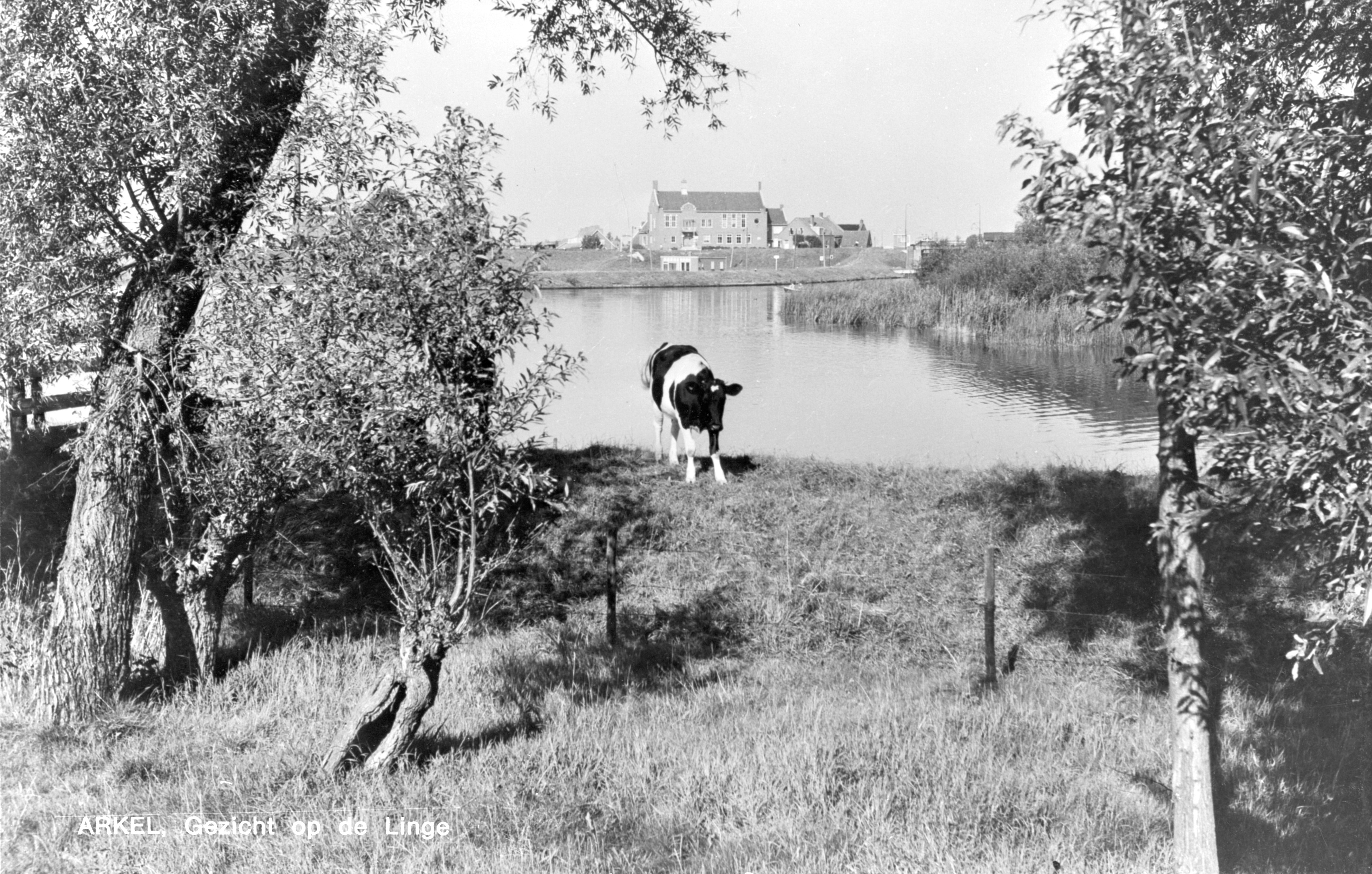 - Gezicht over de Linge naar het raadhuis aan de Raadhuisstoep in Arkel.