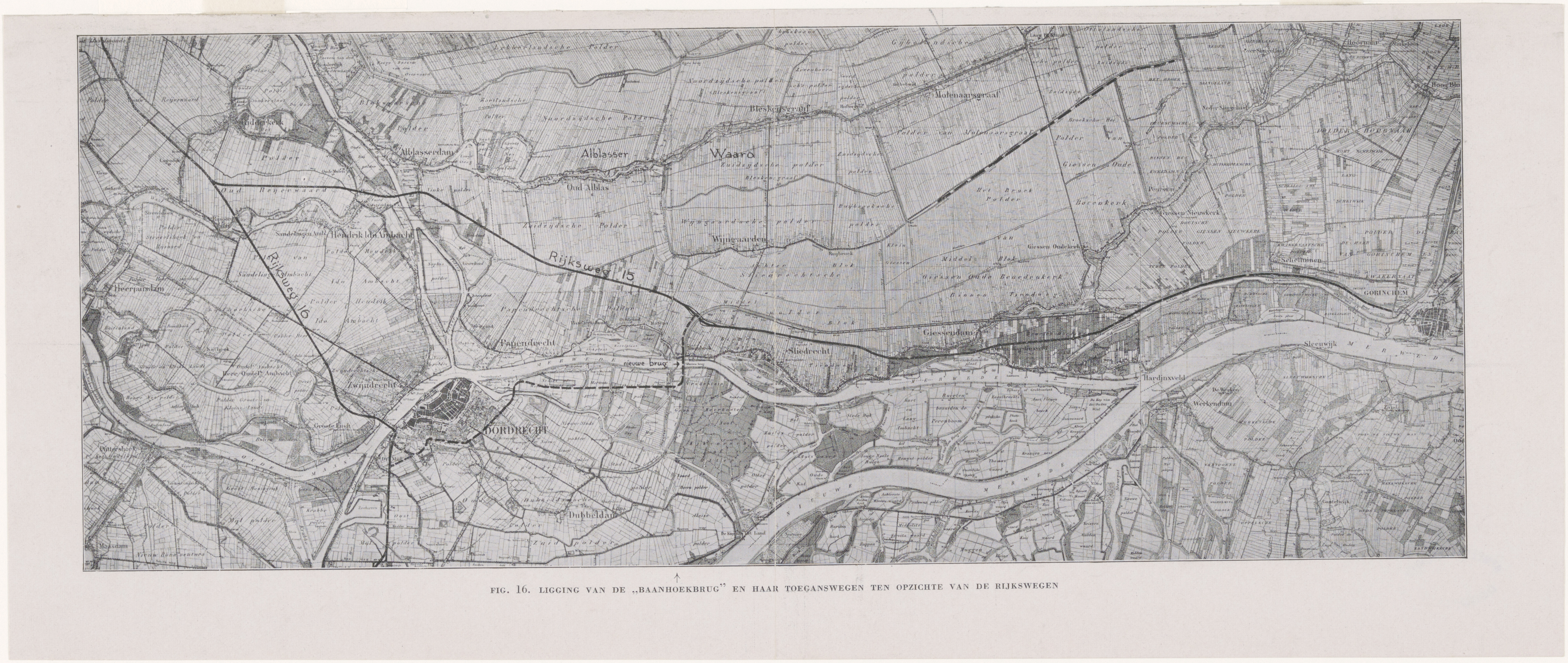 - Kaart van delen van het Eiland van Dordrecht, IJsselmonde en de Alblasserwaard. Op deze kaart ligt de nadruk op de Rijkswegen 15 en 16 en de geplande Baanhoekbrug (voor autoverkeer), met aansluitende verbindingen naar voornoemde rijkswegen.
