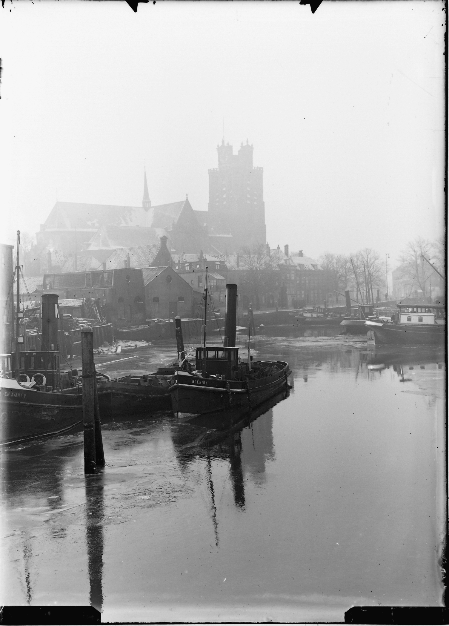- Licht bevroren Nieuwe Haven met zicht op de Houttuinen en de Grote Kerk.