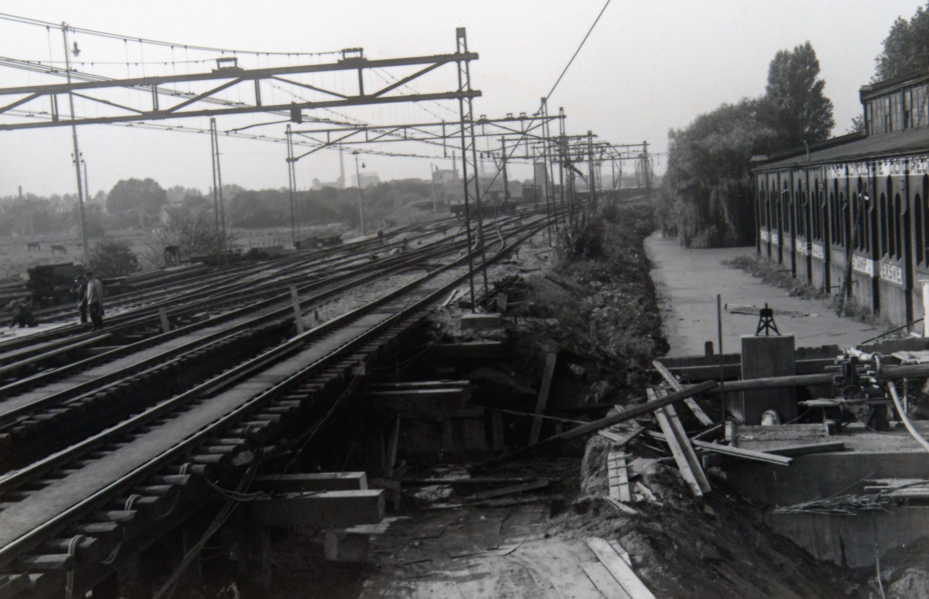 bouwwerkzaamheden fabrieken spoorrails waterpompen