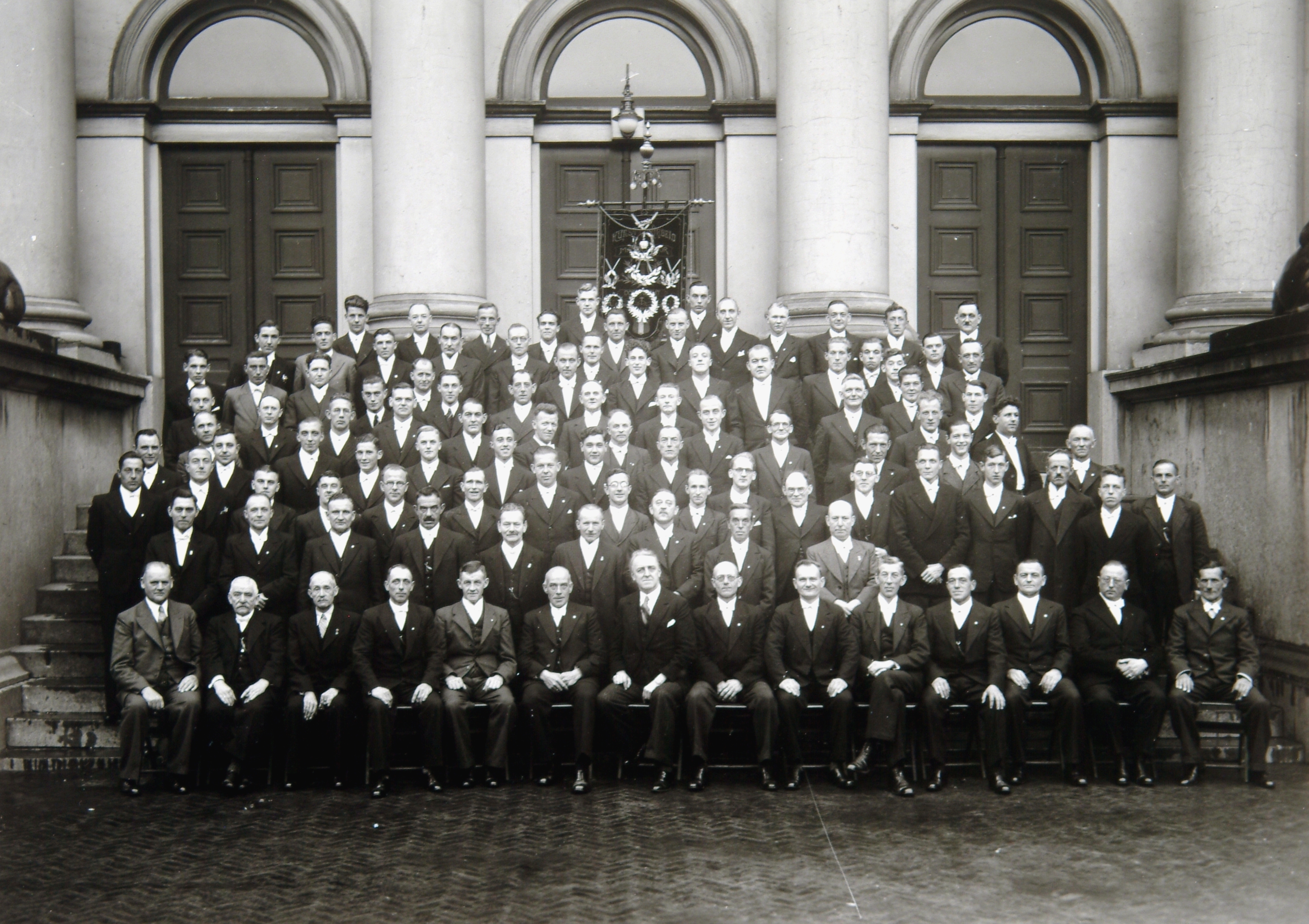 - Muziekvereniging "Kunst na Arbeid" (KNA) bij het 40-jarig bestaan op de trappen van het stadhuis.