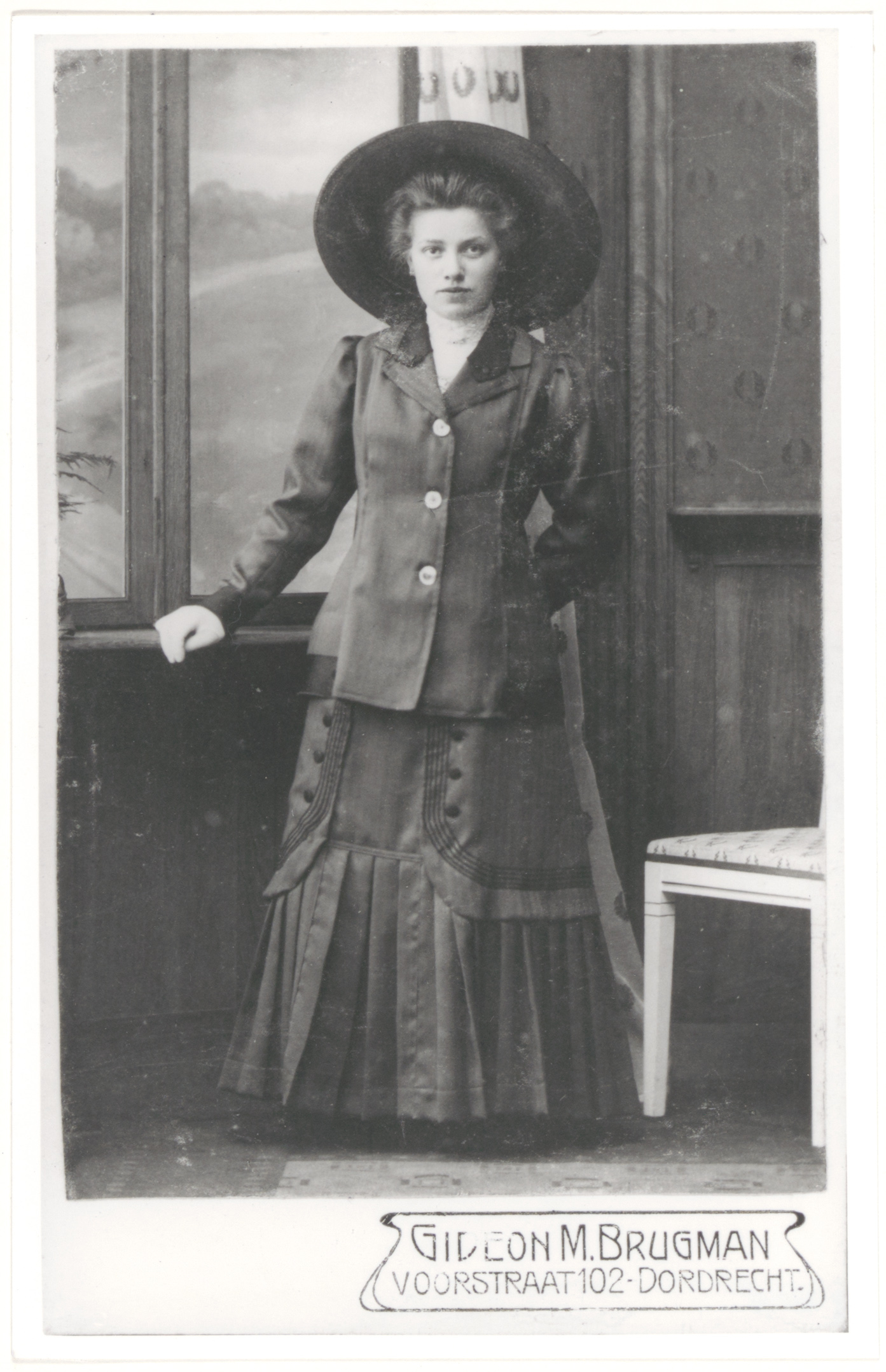 - Martina (Tina) Francisca Valk, met hoed op 18-jarige leeftijd in een studiodecor, geboren te Dordrecht op 11 juni 1892, overleden in 1974; zij trouwde op 28 januari 1915 met Antonius Leonardus Theodorus Hurkmans.