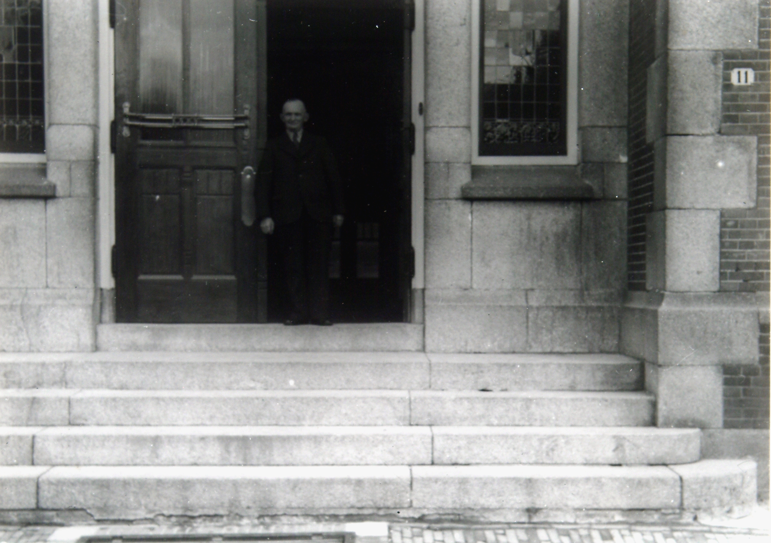 Op 9 september 1940 bestond de H.B.S. in het Oranjepark 75 jaar. Conciërge Riske verlaat het gebouw.
