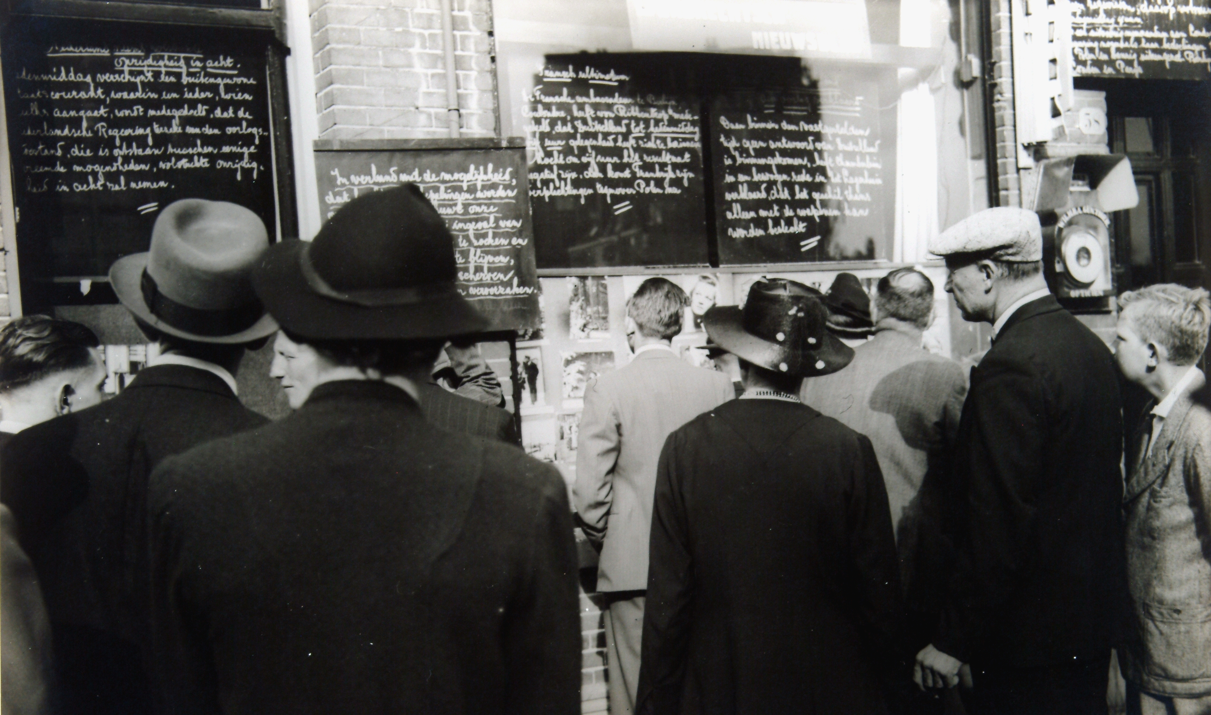 - Oorlogsdreiging is af te lezen van de berichten aan de gevel van het Dordrechts Nieuwsblad.