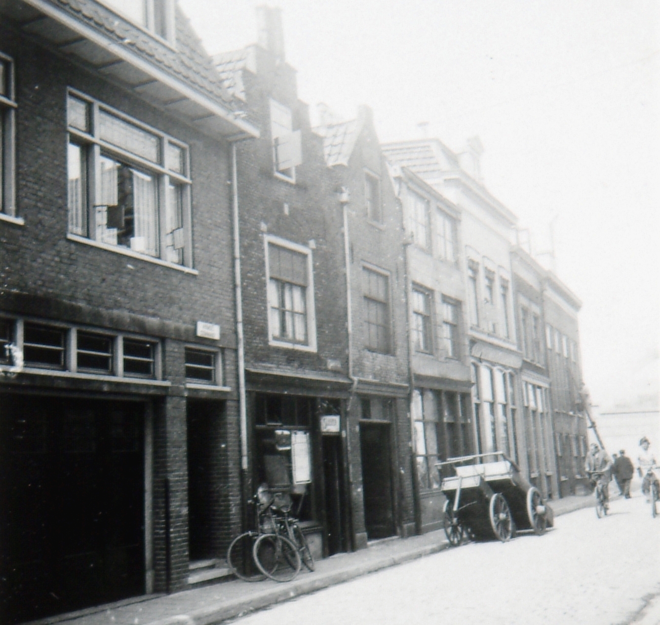 - De Bleijenhoek genomen naar het noordoosten in de richting van de Beneden Merwede. In het huis met het trapgeveltje was de kapperszaak van Van Dalen gevestigd. Aan het end op de hoek was de koperslagerij van Zock