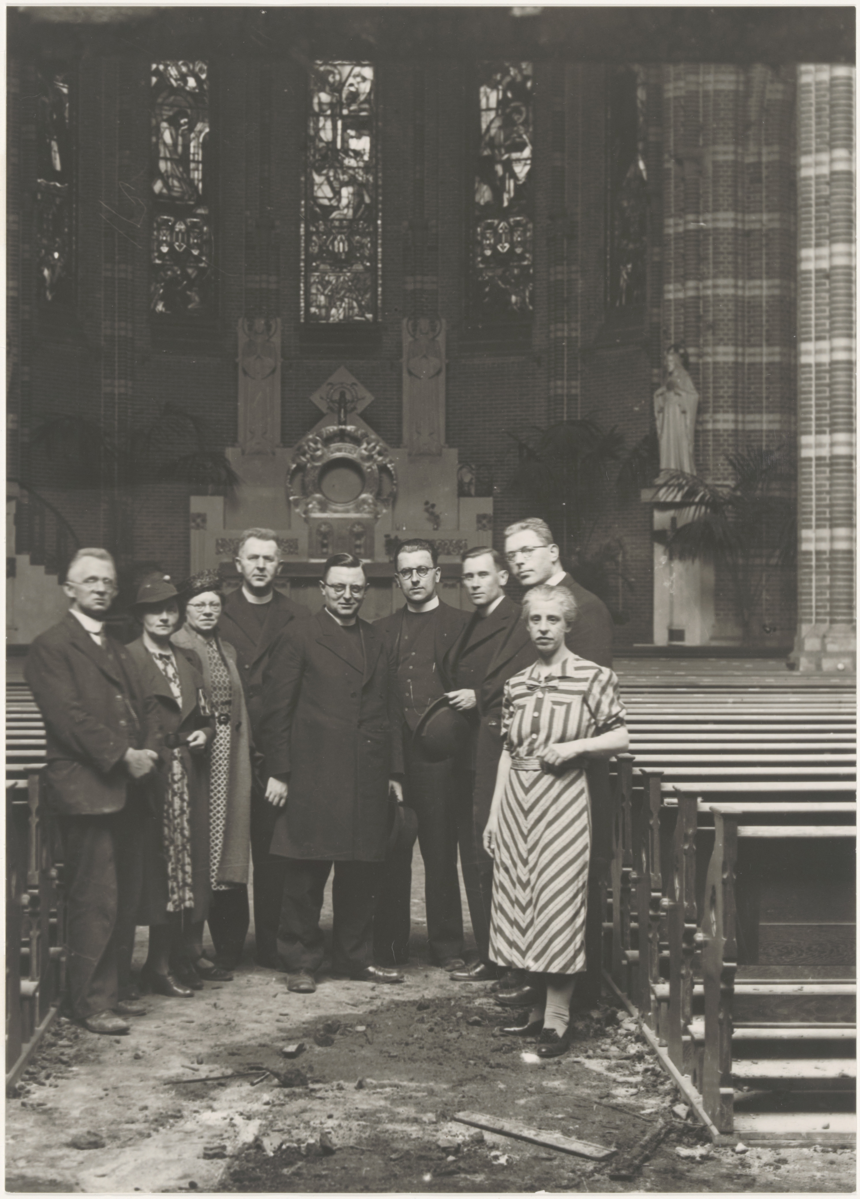 - kerkbanken kerkinterieurs oorlogsschades pastoors Tweede Wereldoorlog