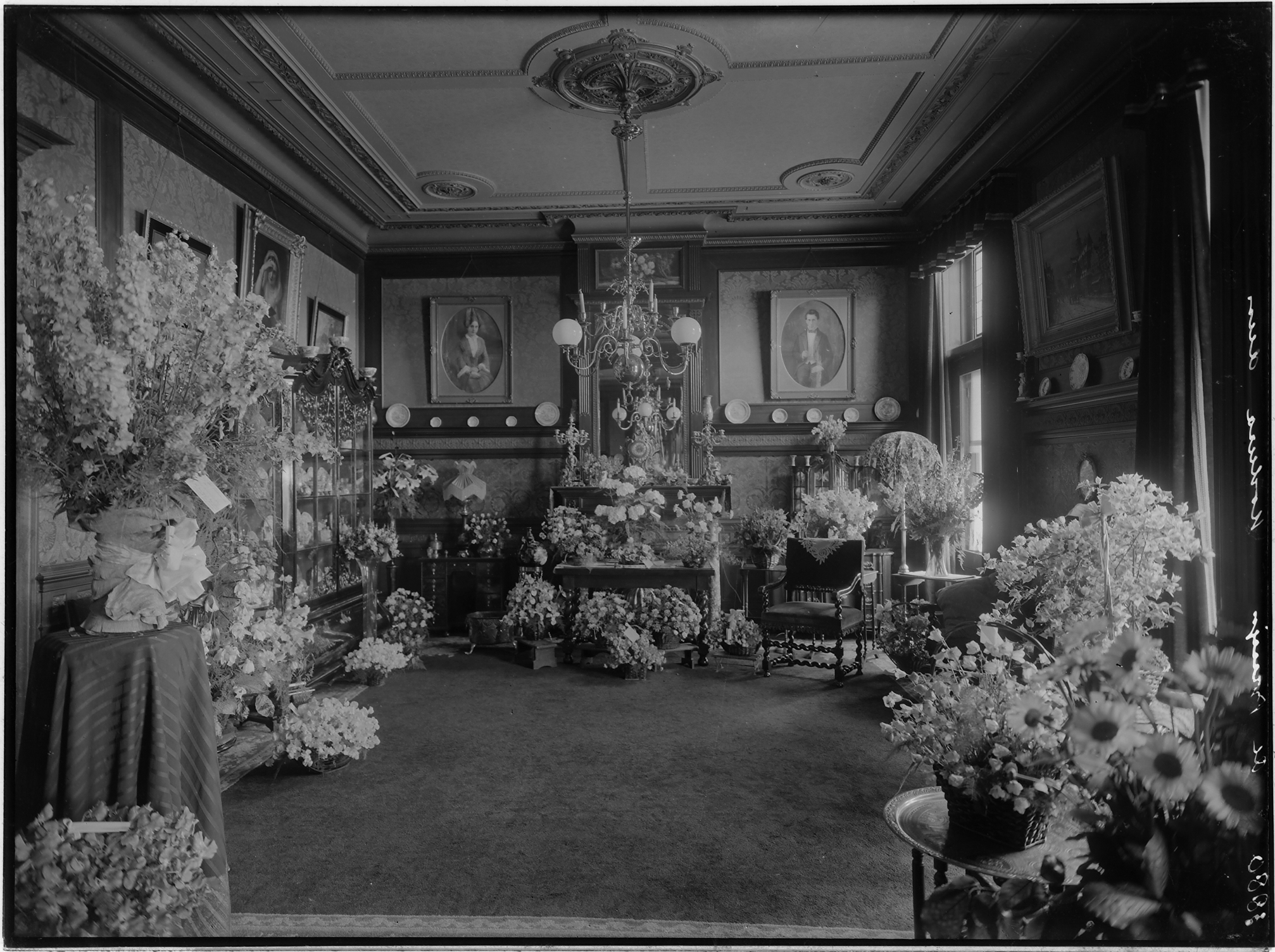 Kamer vol bloemen in het huis van W. de Bruin aan de Buiten Walevest