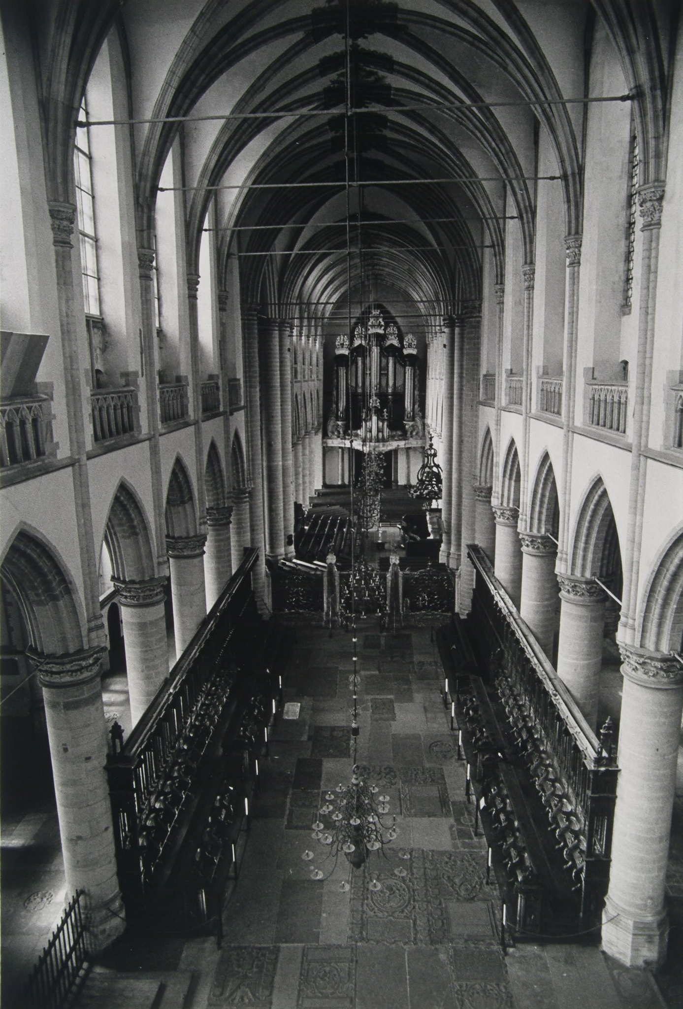 Gezicht op de koorbanken in de Grote Kerk, gezien naar het orgel