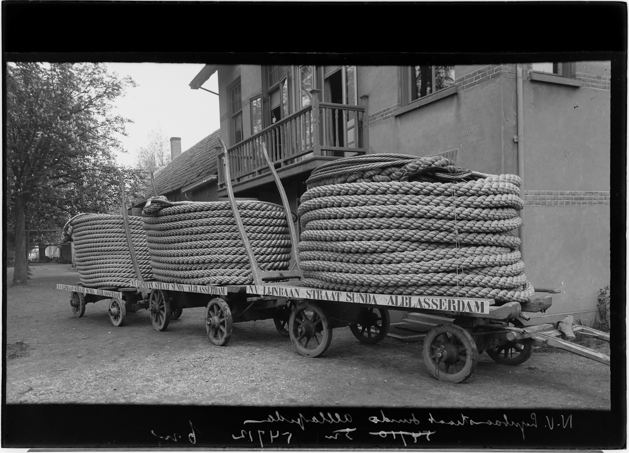 Wagens met touwen van Touwfabriek N.V. Lijnbaan Straat Sunda, Alblasserdam