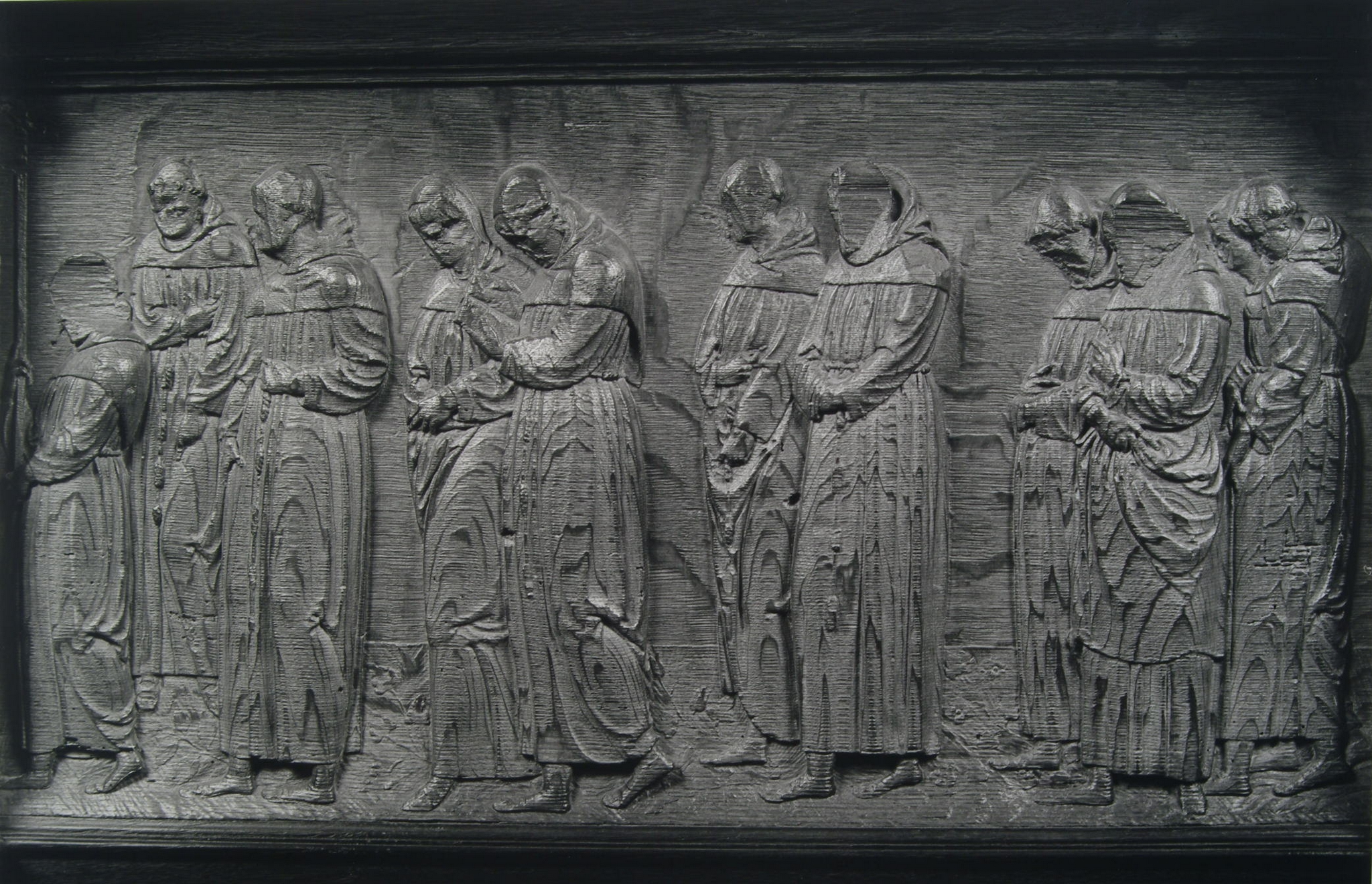 - Voorstelling in houtsnijwerk in de panelen van de koorbanken in de Grote Kerk