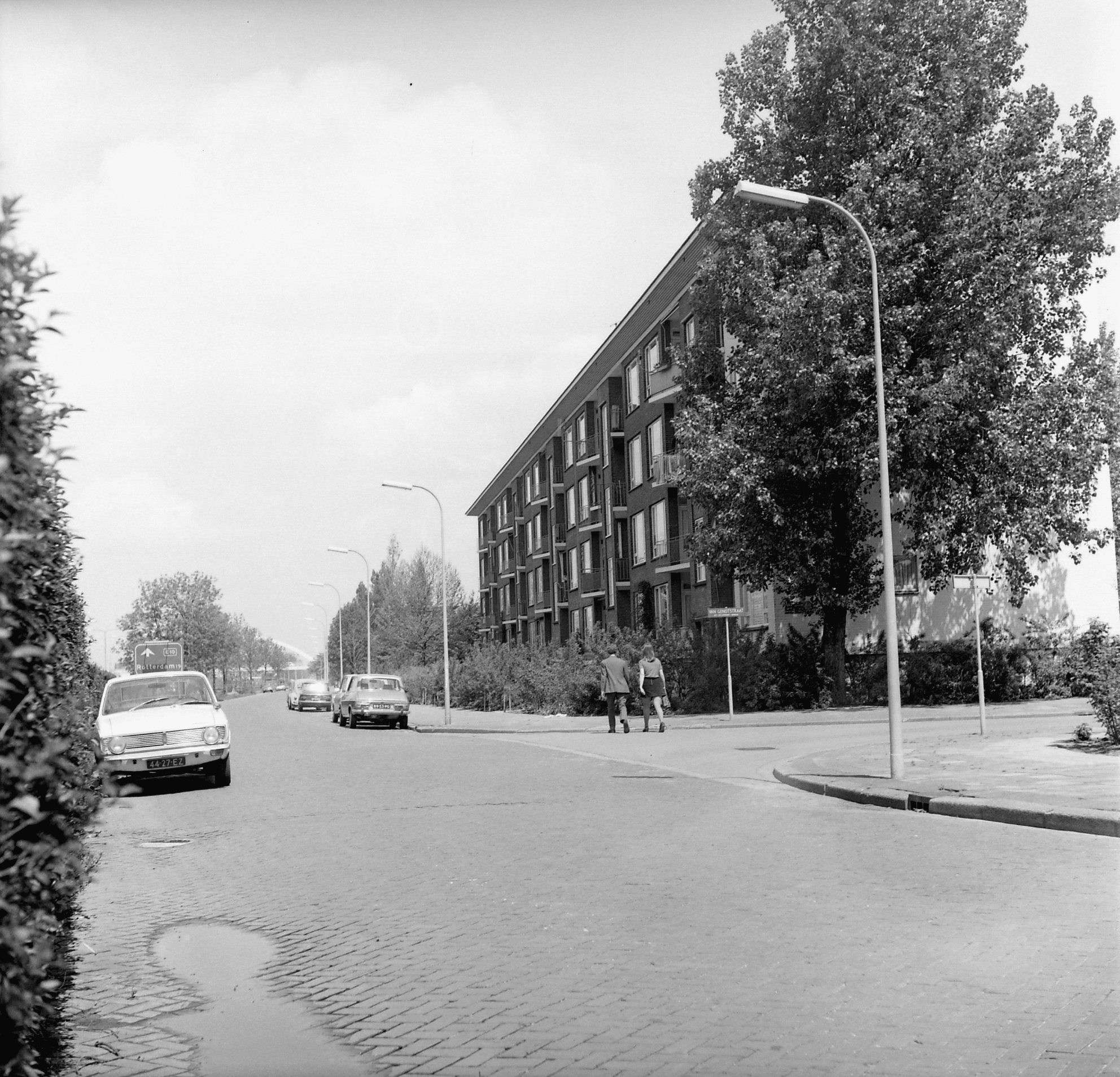 Dit flatblok is qua buitenkant anno 2016 nog in originele staat zoals het destijds in de jaren vijftig werd gebouwd. Verderop aan deze weg staat nog een flat ,deze is driehoog en ook nog in bruine uitvoering. Het zijn de enige twee nog originele flats uit de beginperiode.