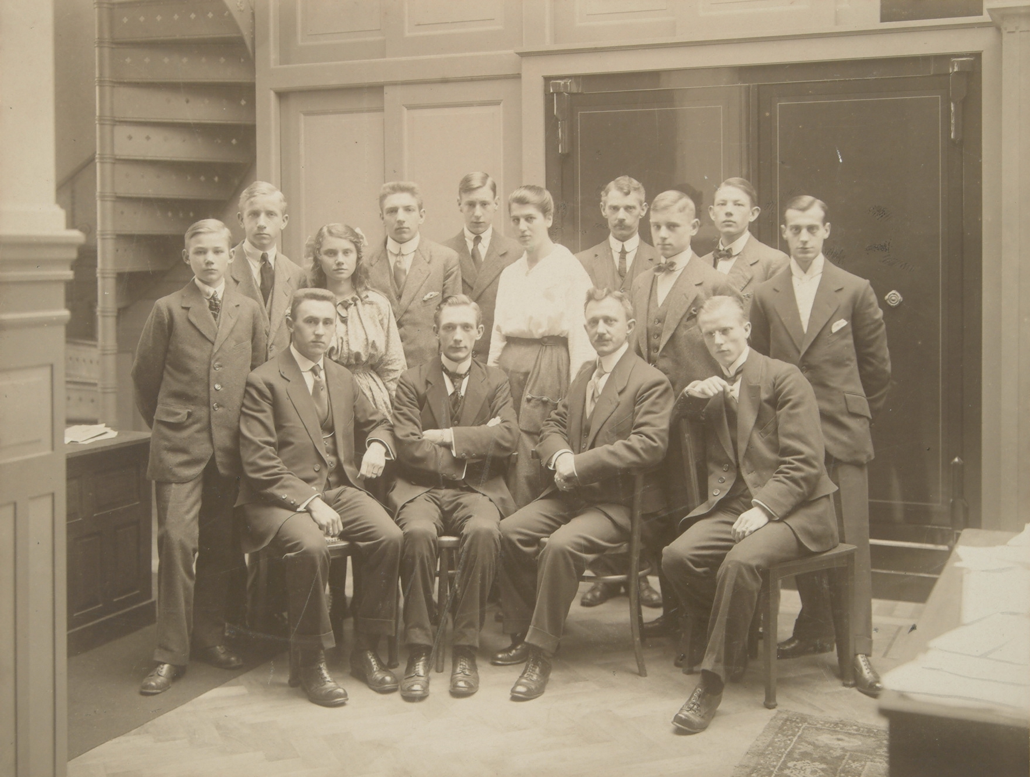 - Kantoorpersoneel van de firma Boonen & Vriesendorp. Links staand H. Beglinger jongste bediende ca. 15 jaar oud