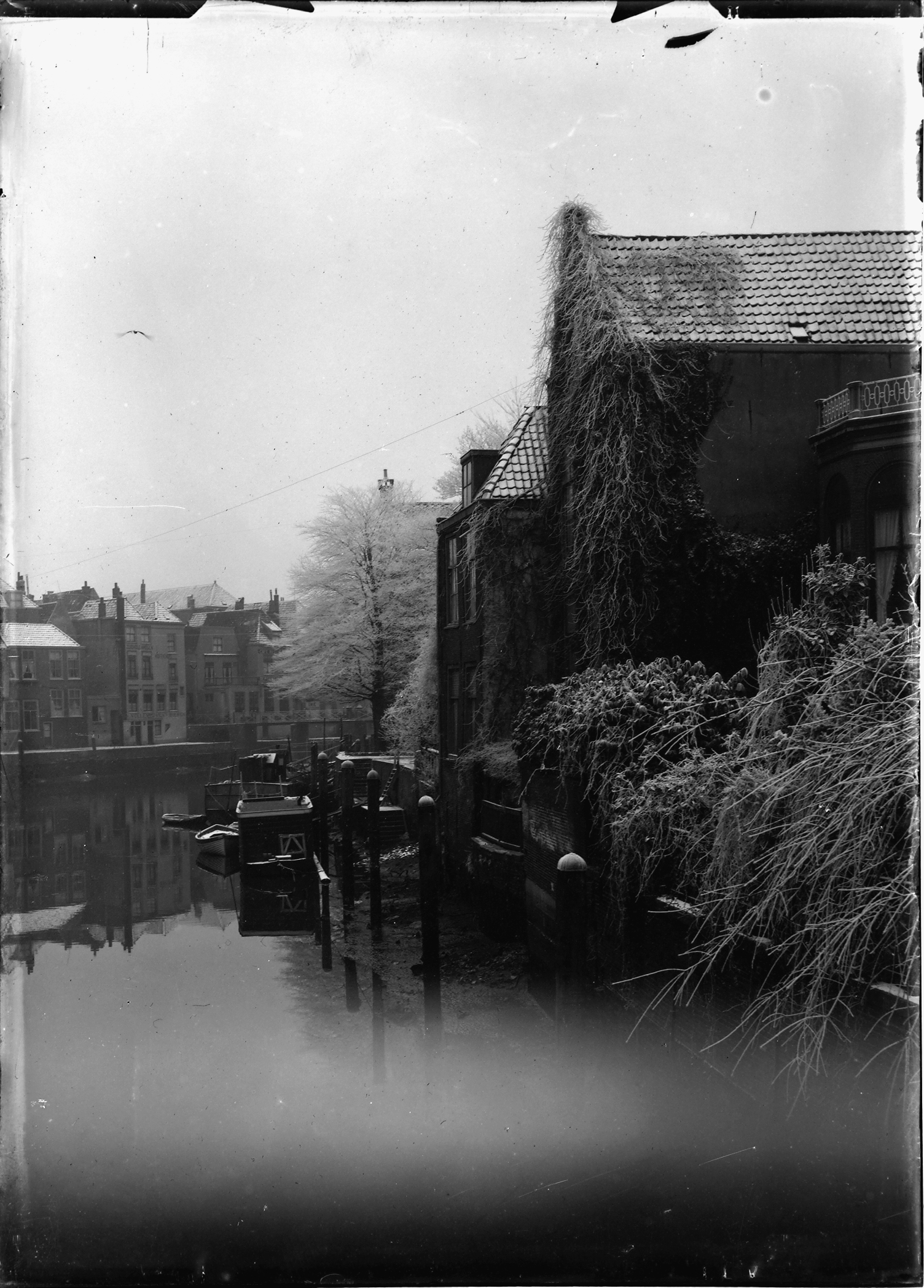 - Voorstraatshaven in zuidelijke richting naar de Wijnbrug gezien. Voor 1960 heette dit deel Wijnhaven. De besneeuwde bomen in het midden staan op de Botermarkt. Rechts de achterkant van huizen in de Wijnstraat, links in de Voorstraat.