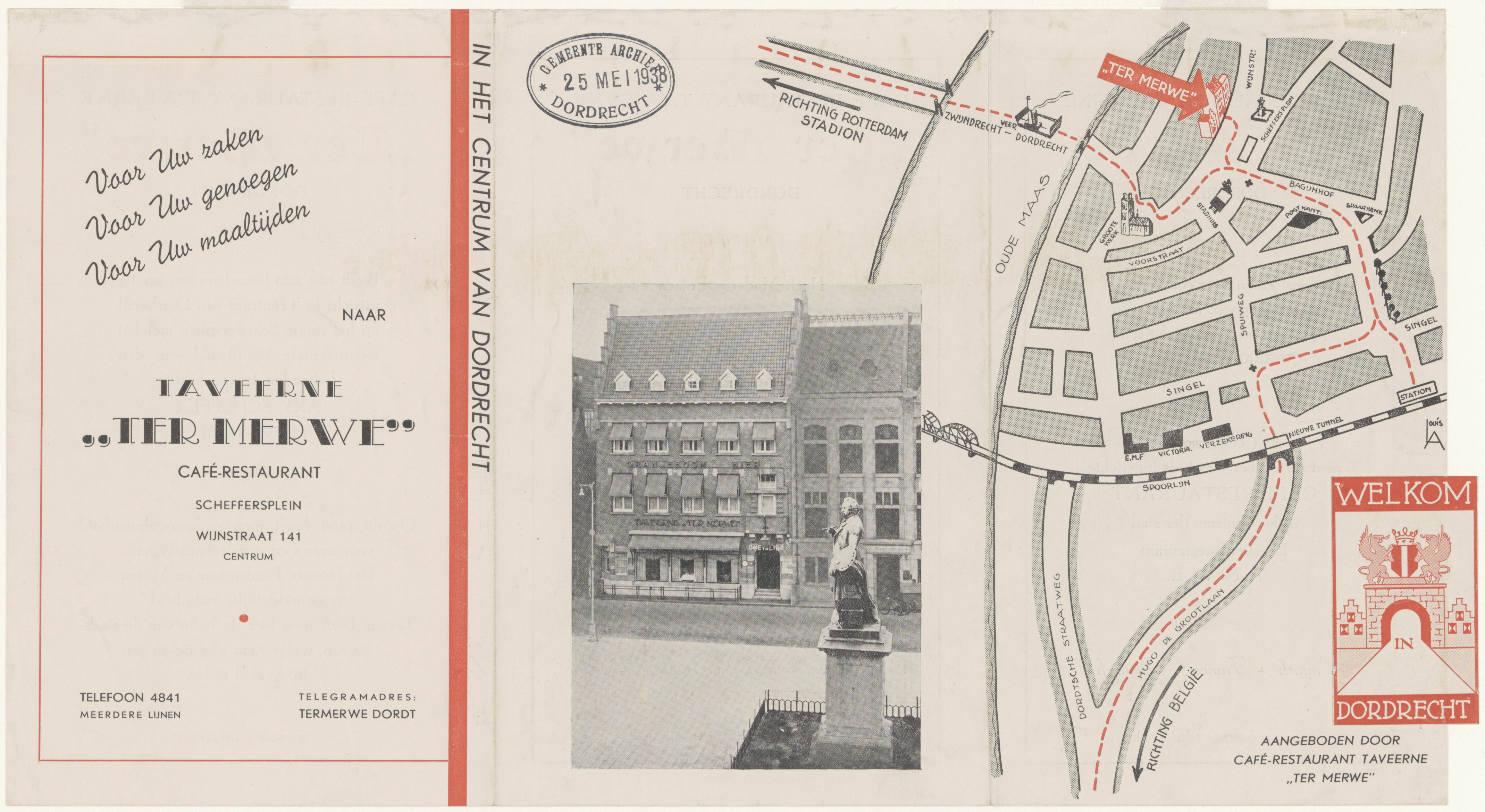 - Reclamekaart van Taveerne Ter Merwe op het Scheffersplein, hoek Tolbrugstraat Waterzijde.