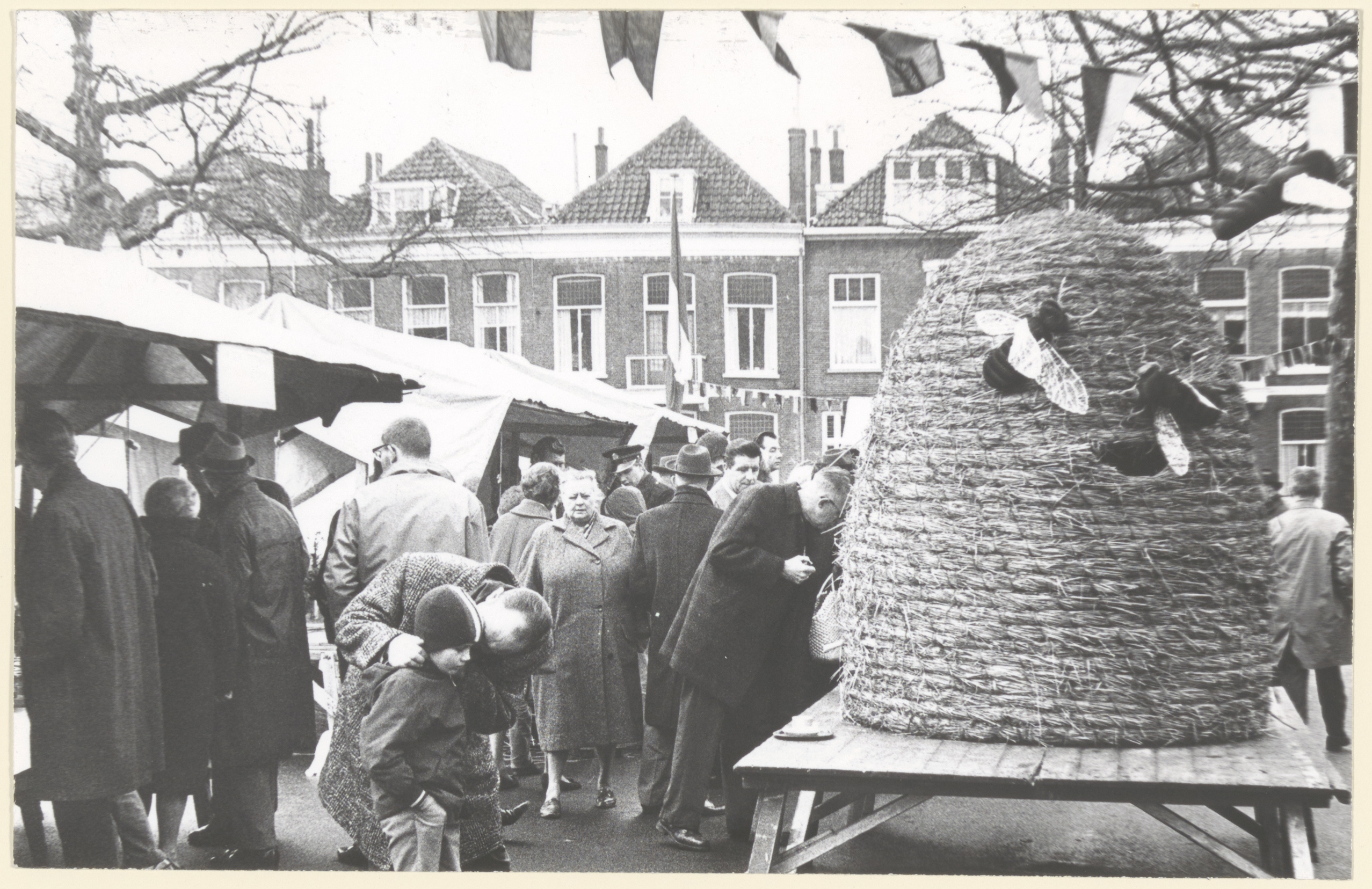Bijenmarkt op het Beverwijcksplein. Op de achtergrond de Matthijs Balenstraat.