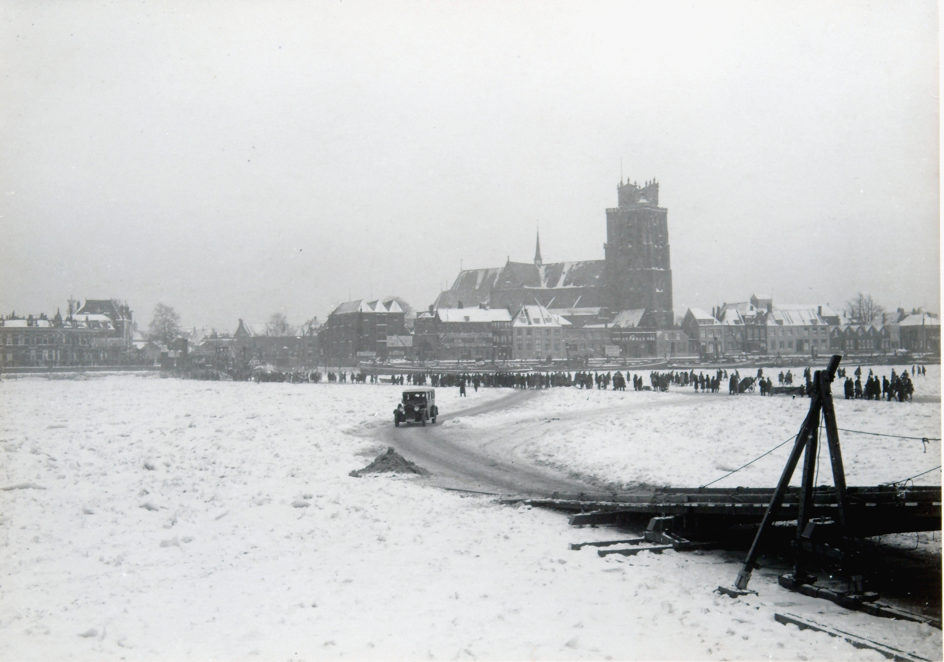 - Het Zwijndrechts veer tijdens de strenge winter van 1929. Voetgangers en gemotoriseerd verkeerd konden over het ijs van de Oude Maas naar de andere kant.