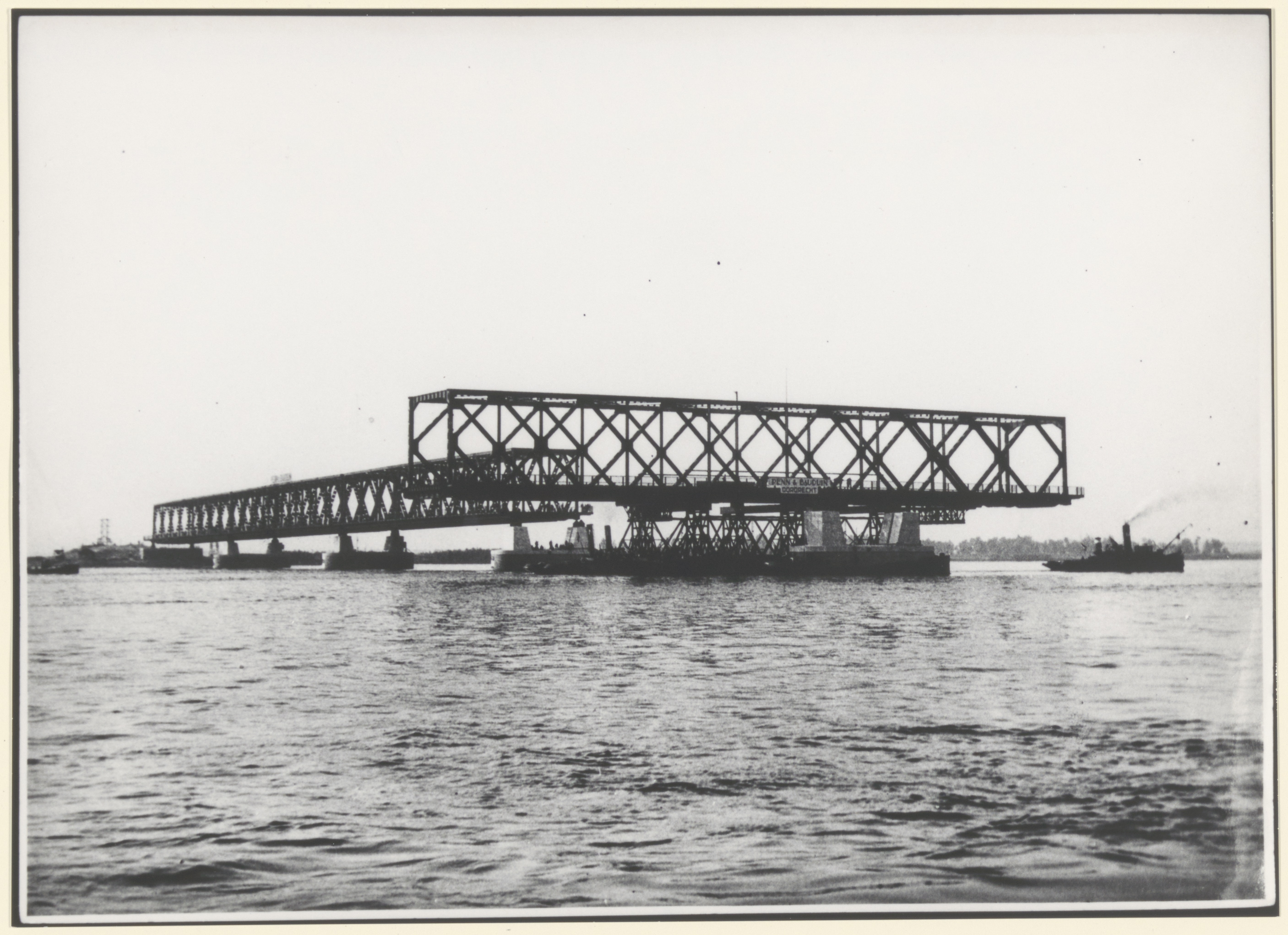 Het invaren van de vierde overspanning van de Moerdijkbrug, gezien in de richting Moerdijk.