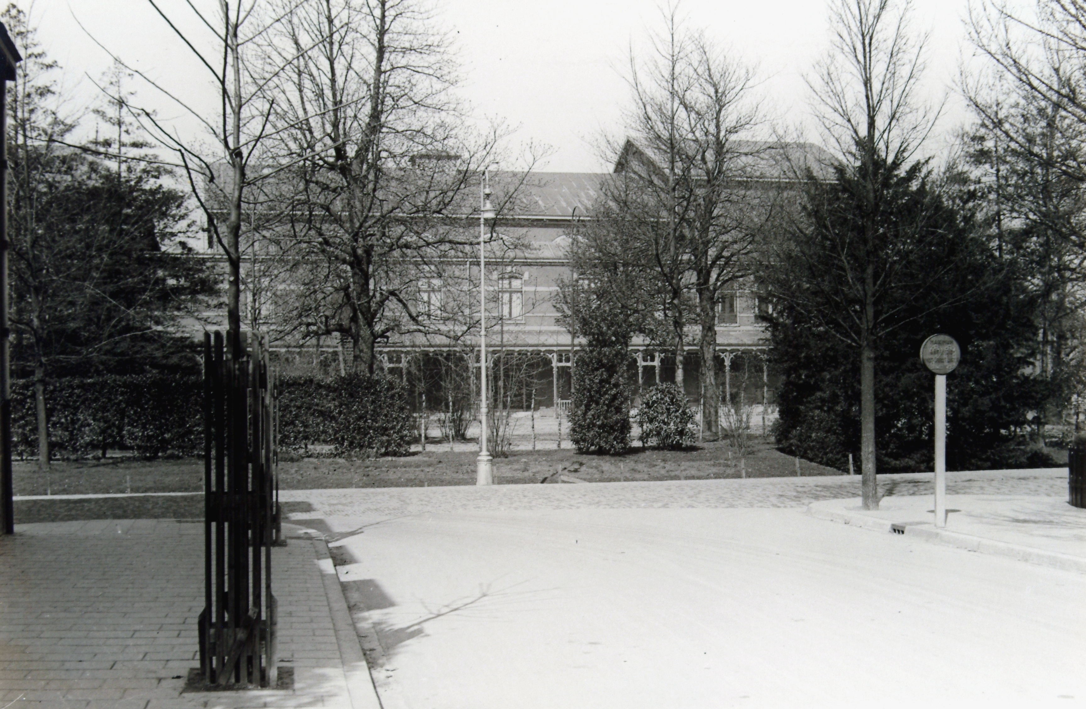- De tuin van schouwburg Kunstmin langs de Godfried Schalckensingel vanuit de Hallincqlaan gezien.