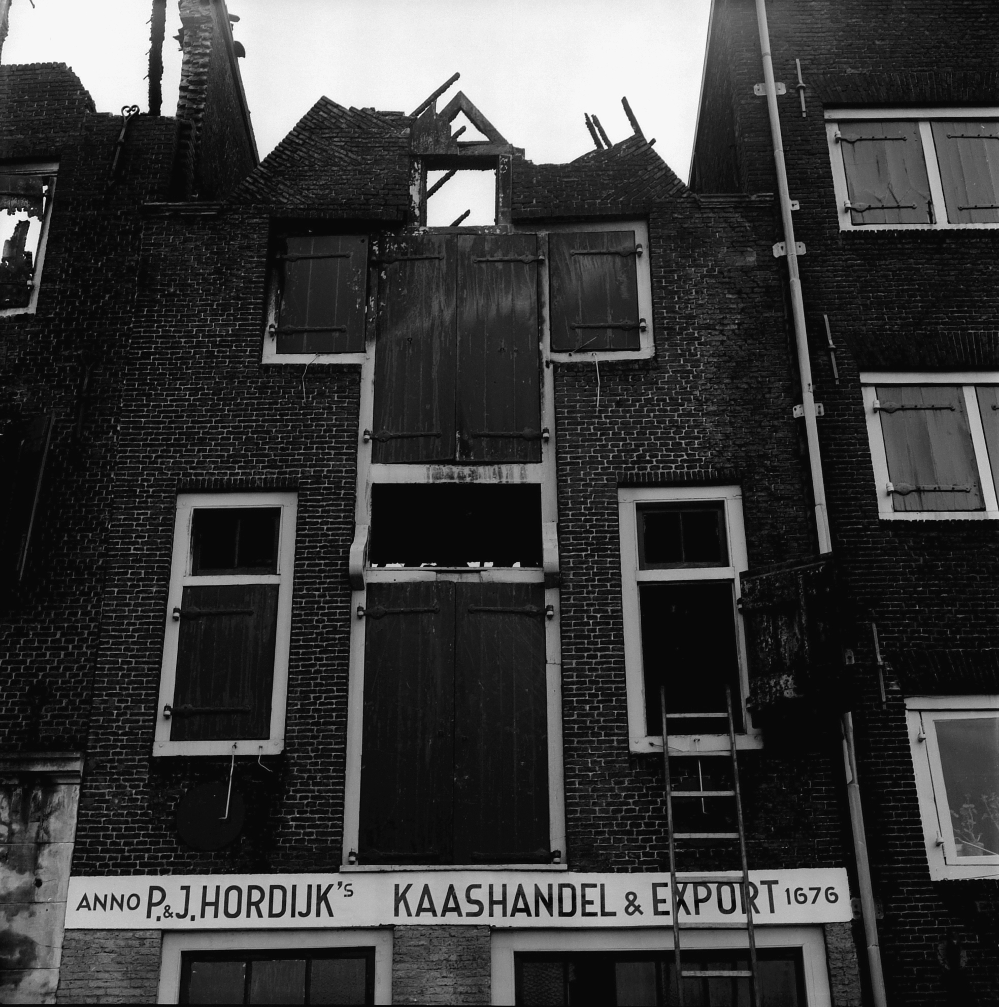 - Foto na de brand in het pakhuis Oud Grond. Dit is het naast gelegen pand De brand was in de nacht van 12 op 13 september 1957