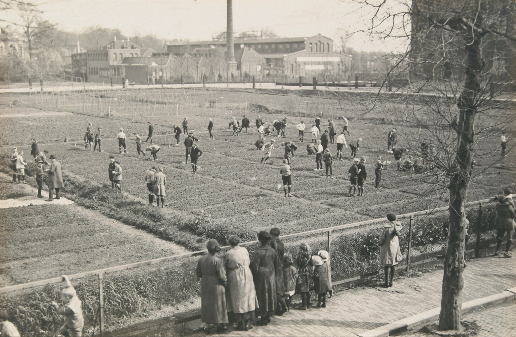 - fabrieken leerlingen / scholieren schooltuinen verzekeringmaatschappijen