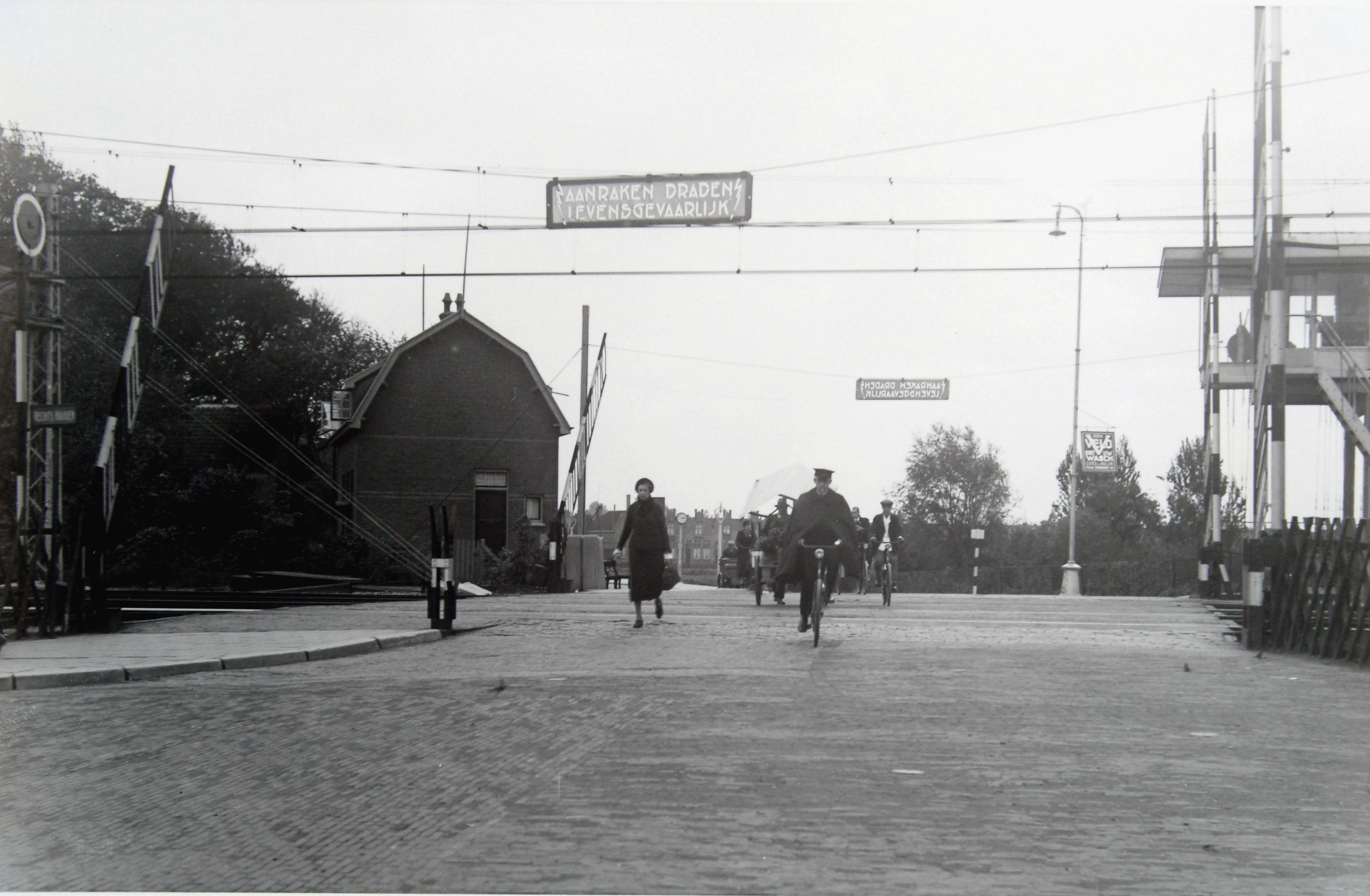 Overweg aan de Spuiweg in de richting van de Krispijnseweg gezien.