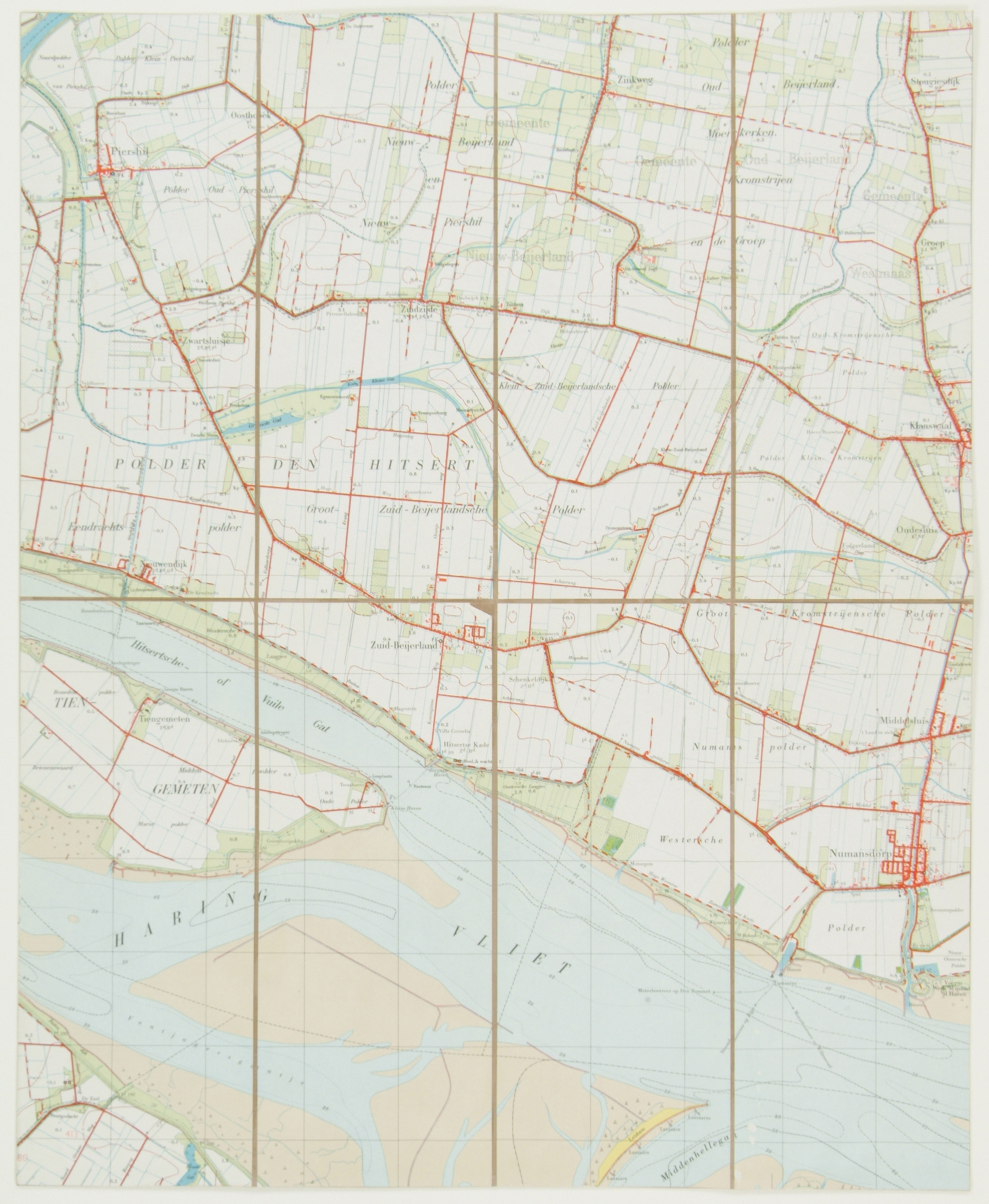 - Topografische kaart Numansdorp, rechtsboven Stougjesdijk, rechtsonder Numansdorp, linksonder Haringvliet, linksboven Piershil.