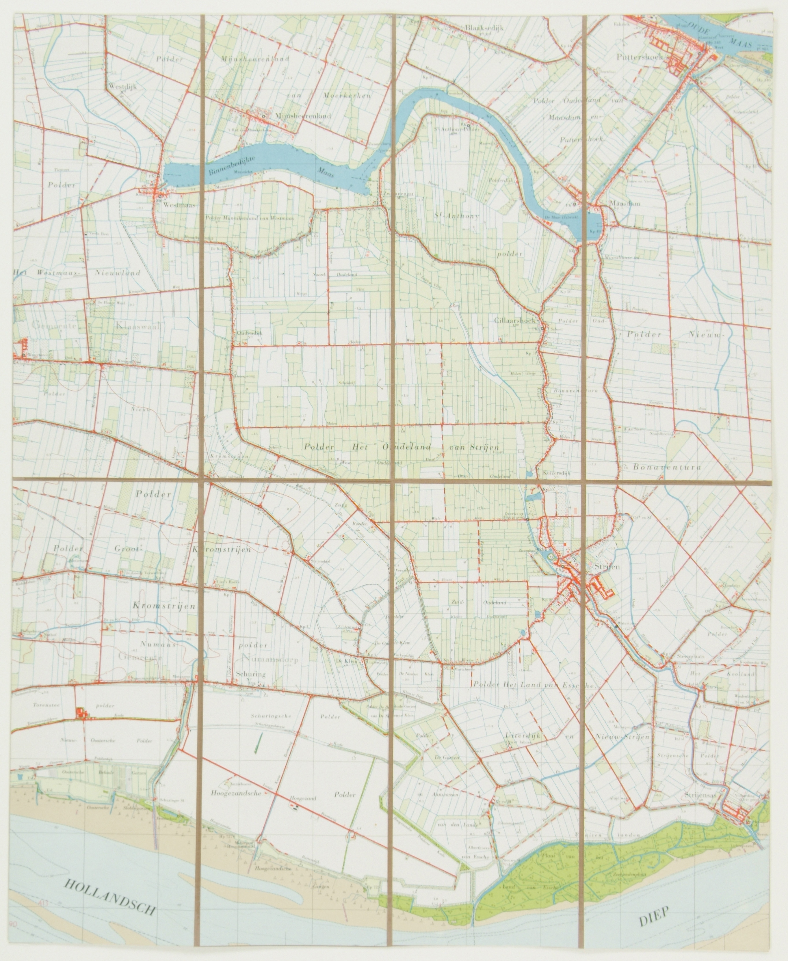 - Topografische kaart Strijen, rechtsboven Puttershoek, rechtsonder Strijensas, linksonder Hollandsch Diep, linksboven Westmaas.