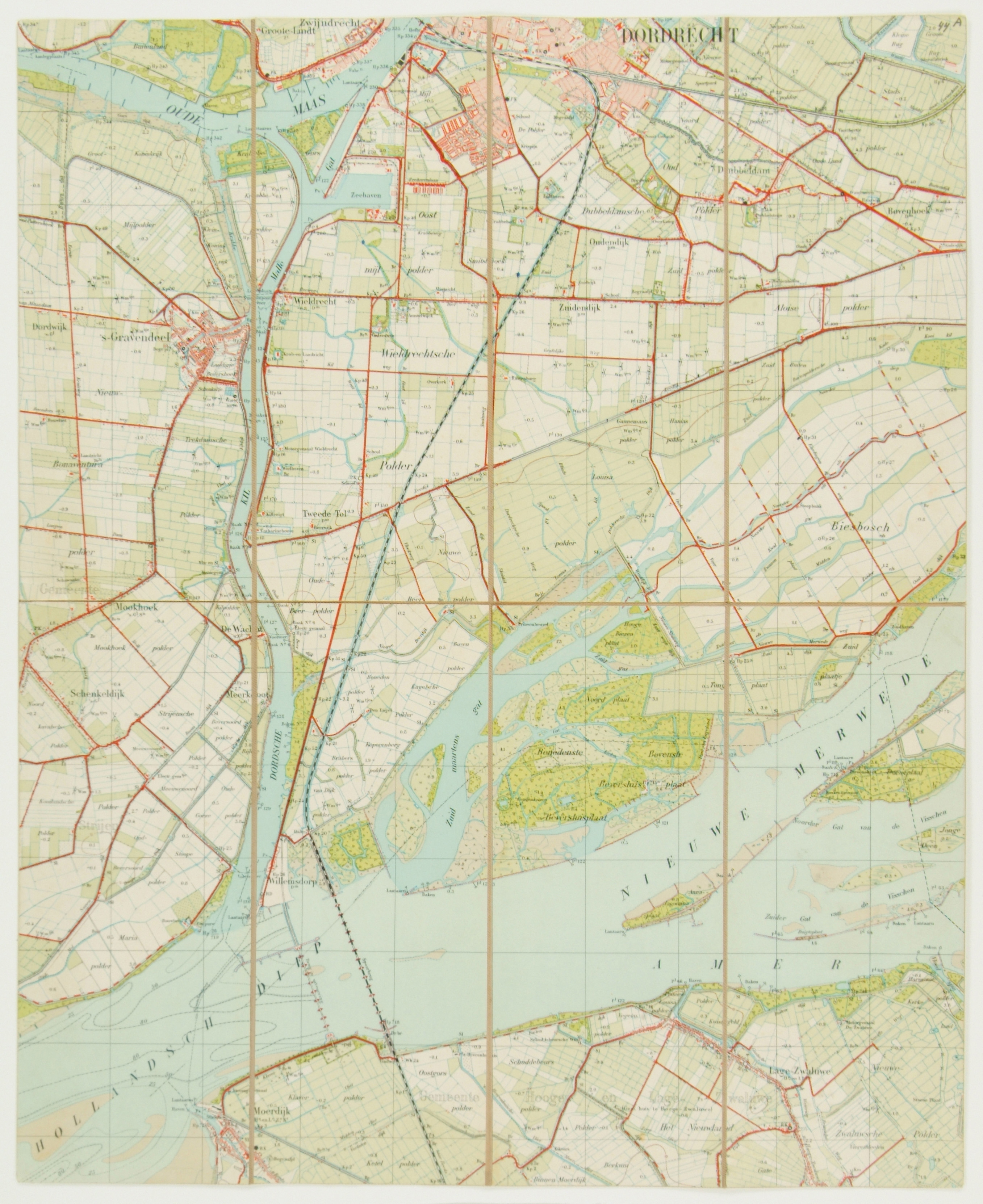 - Topografische dienst Lage Zwaluwe, rechtsboven Wantij, rechtsonder Lage Zwaluwe, linksonder Moerdijk, linksboven Oude Maas.