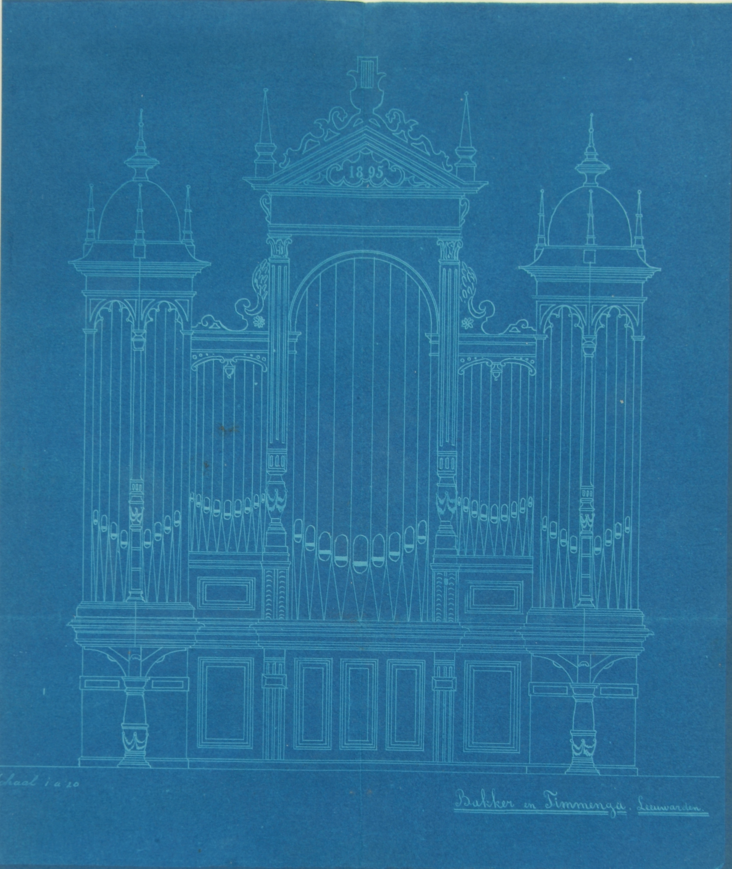 Ontwerp voor het front van het orgel van de Doopsgezinde Gemeente in de Lenghenstraat.