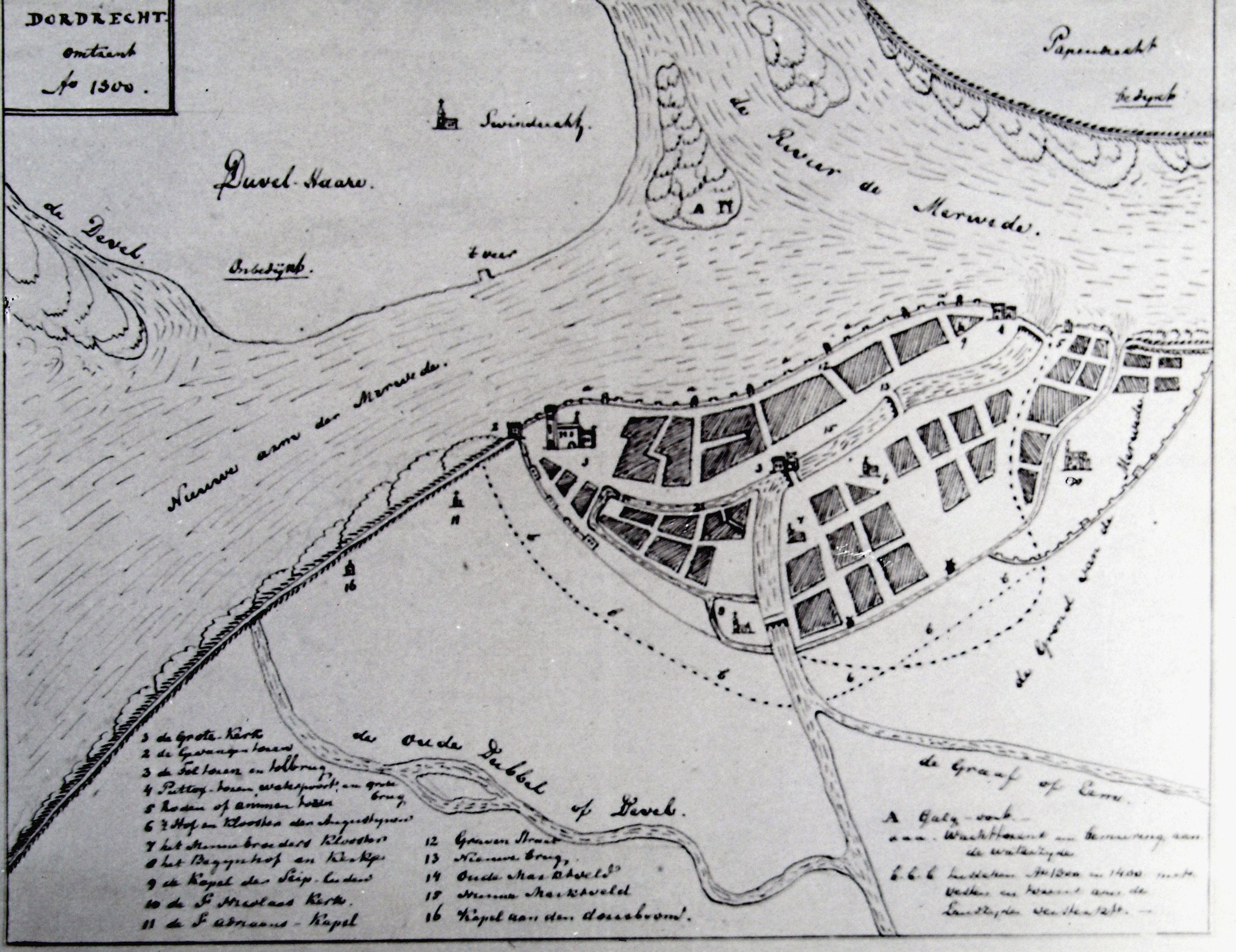 - Plattegrond van Dordrecht door J. Smits Jzn (pentekening 22x27,8 cm).