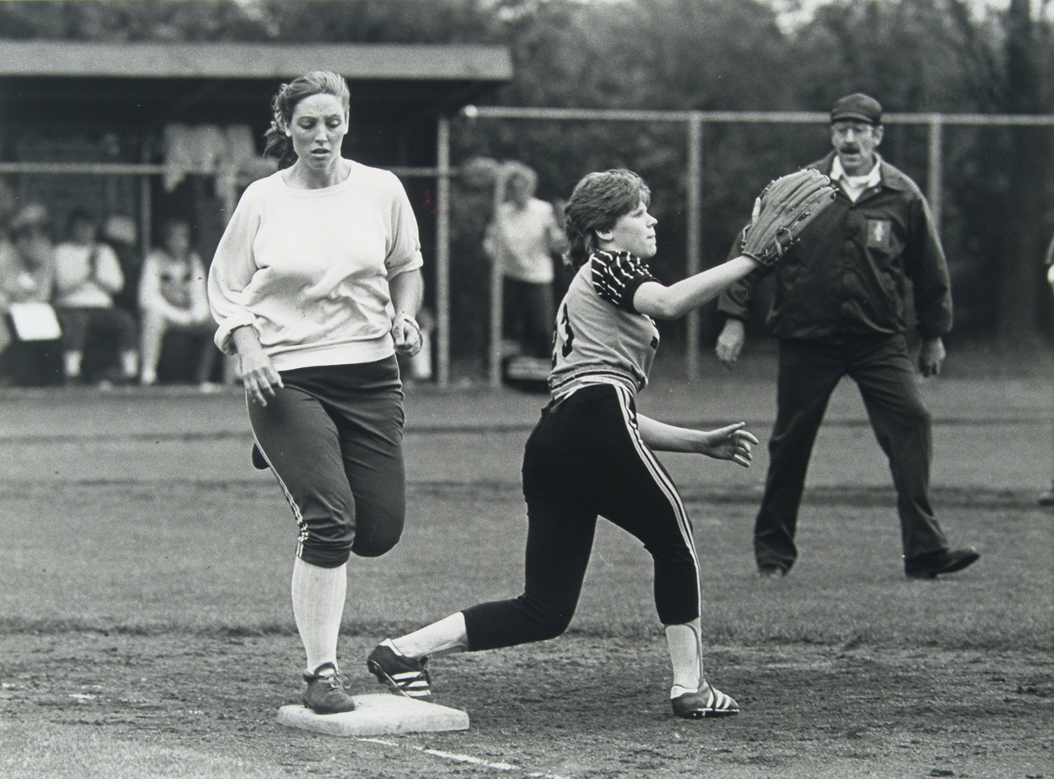 - Spelmoment in een wedstrijd van de Zwijndrechtse softbalclub Compri