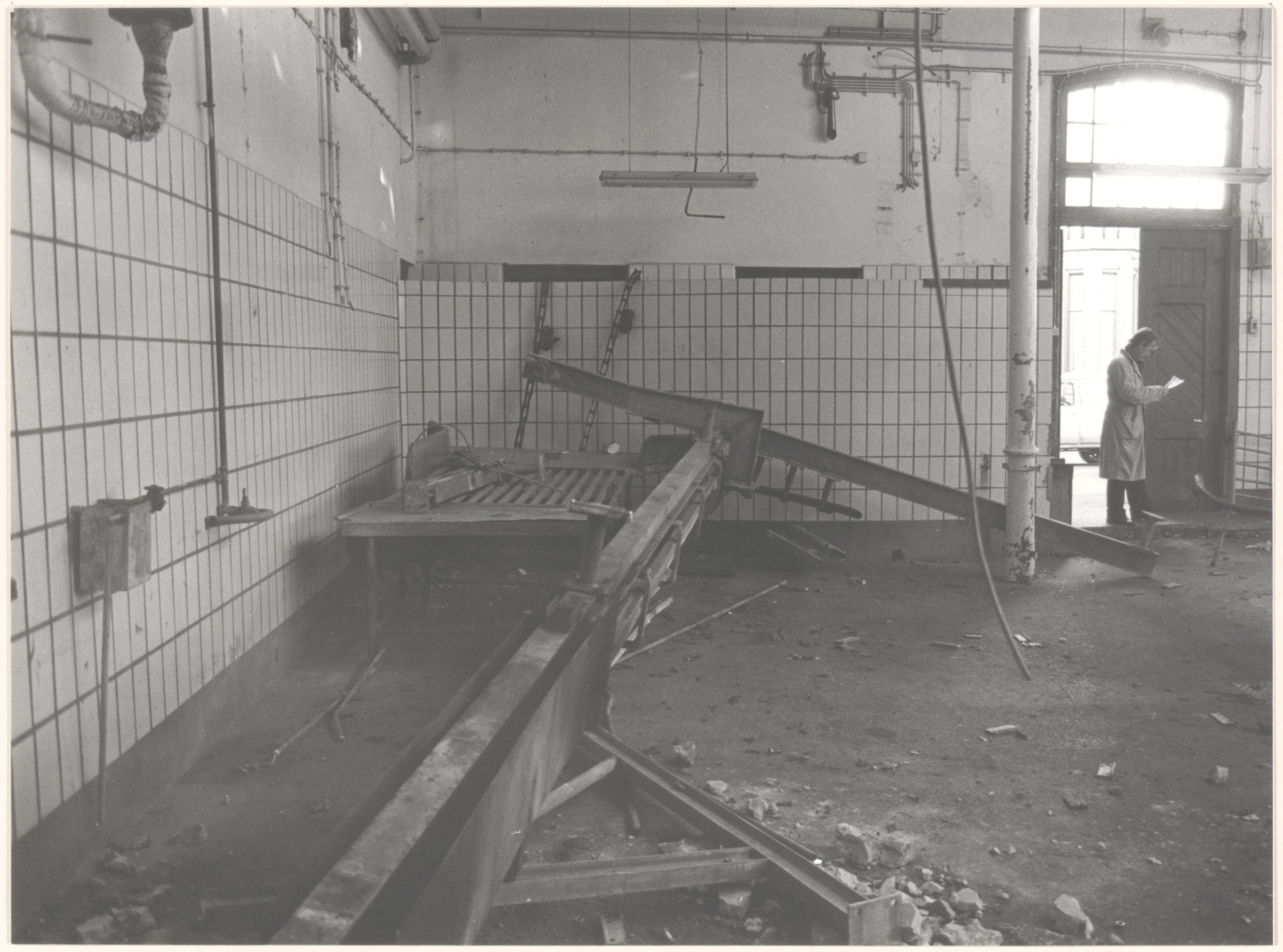 - Interieur van het openbaar slachthuis aan de Markettenweg 14 dat in mei/juni 1985 werd gesloopt.