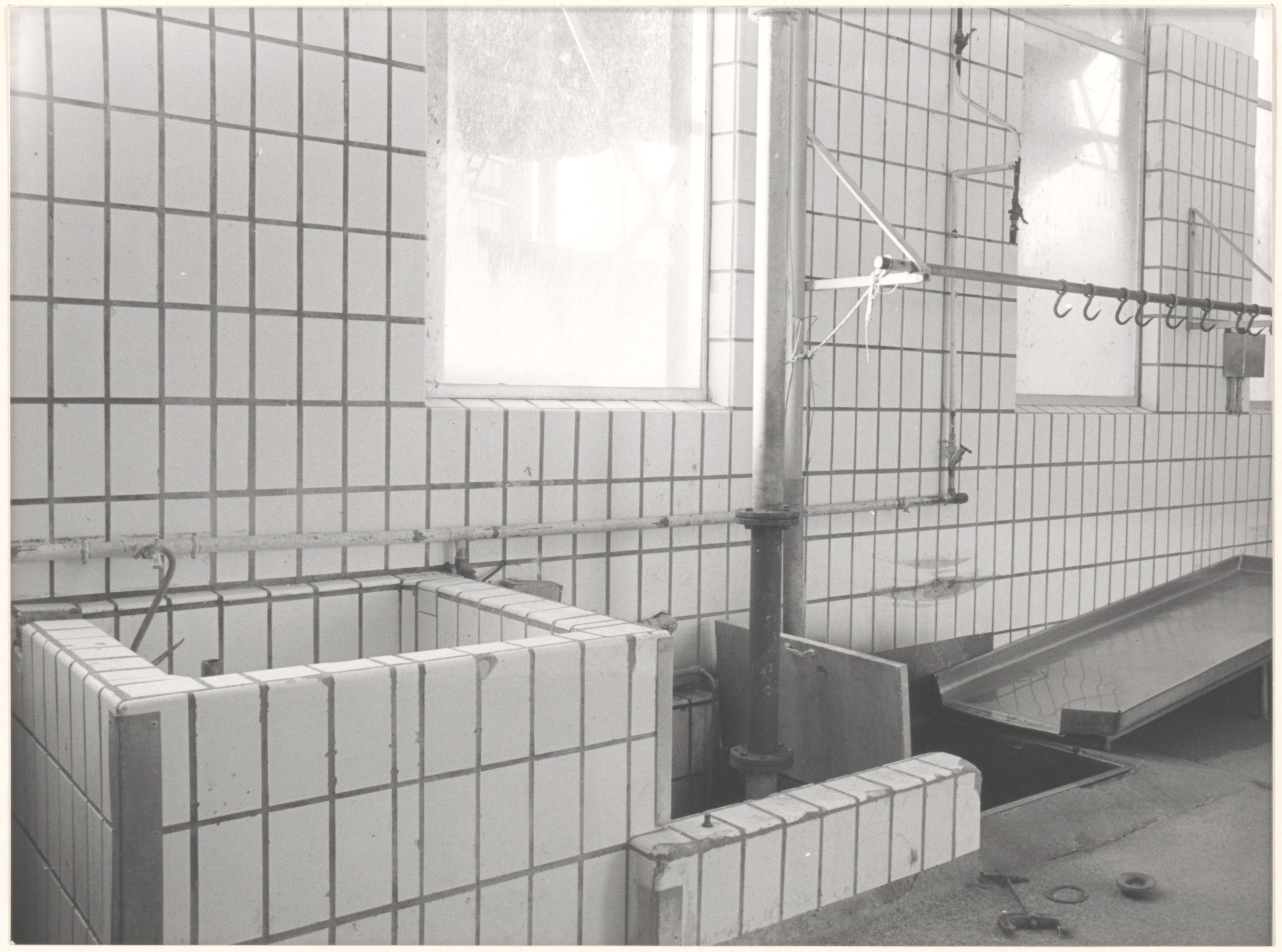- Interieur van het openbaar slachthuis aan de Markettenweg 14 dat in mei/juni 1985 werd gesloopt.
