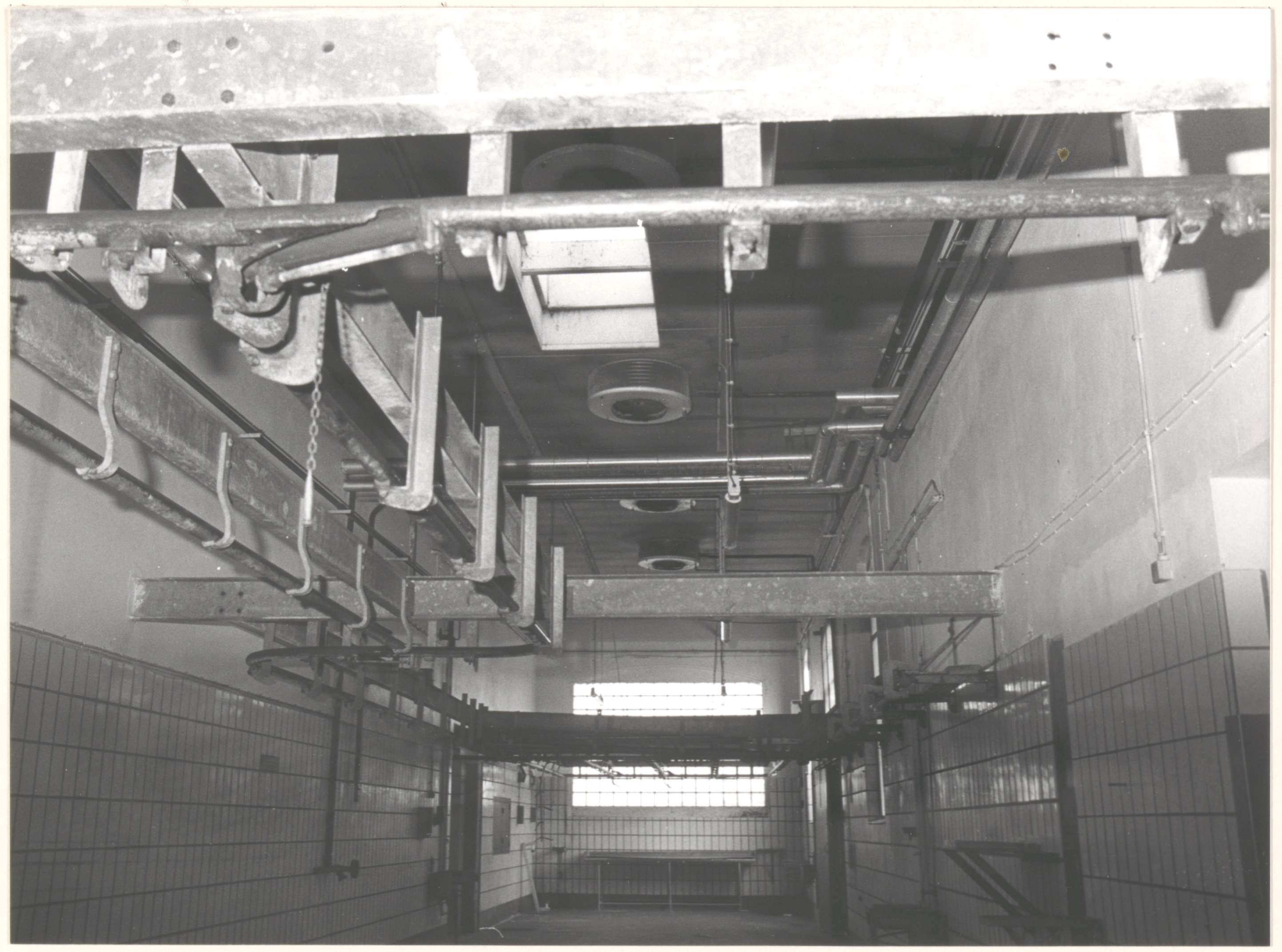 - Interieur van het openbaar slachthuis aan de Markettenweg 14 dat in mei/juni 1985 werd gesloopt.