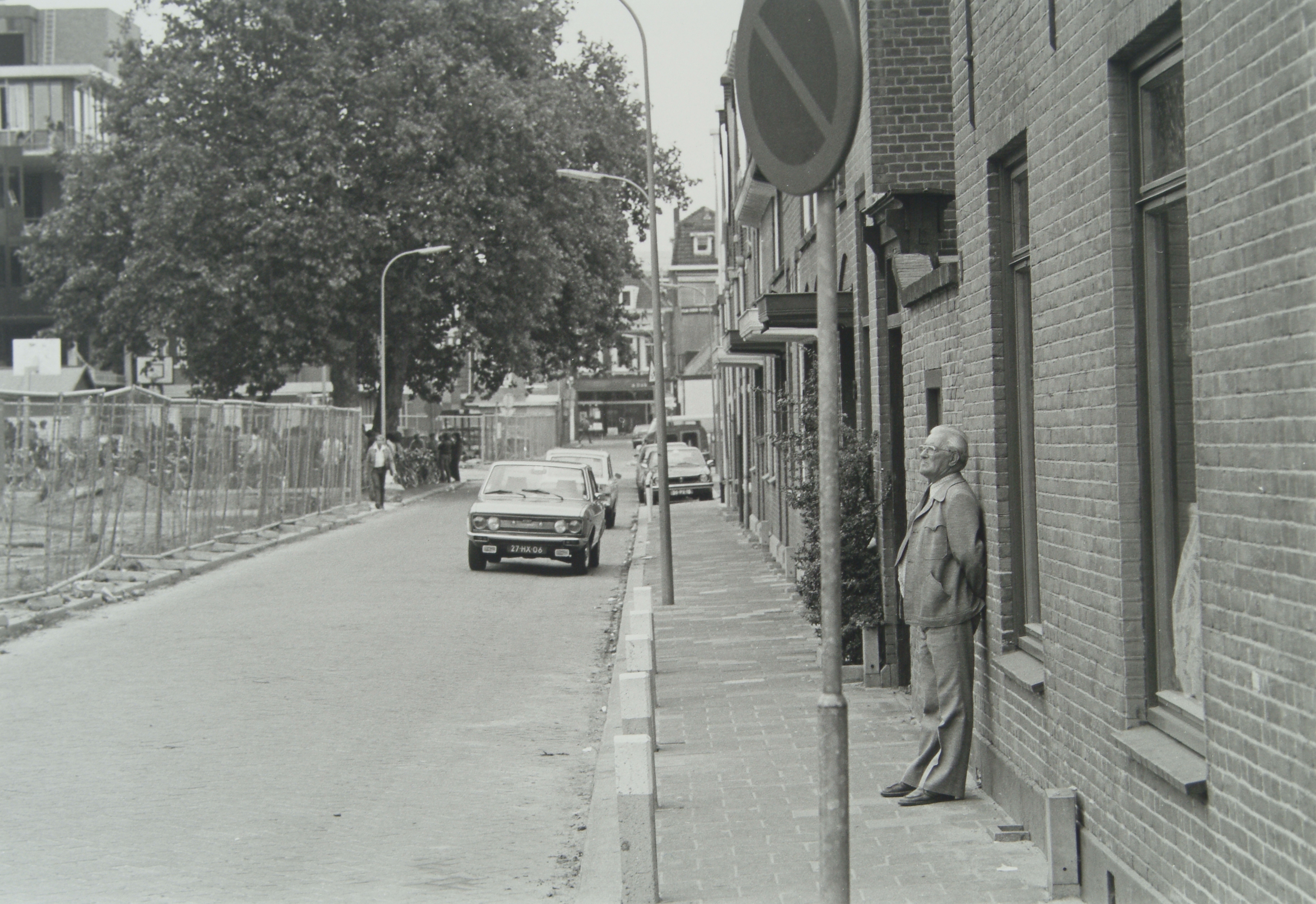 - Geldelozepad richting de Spuiweg met links de bouw van de parkeergarage achter het stadskantoor