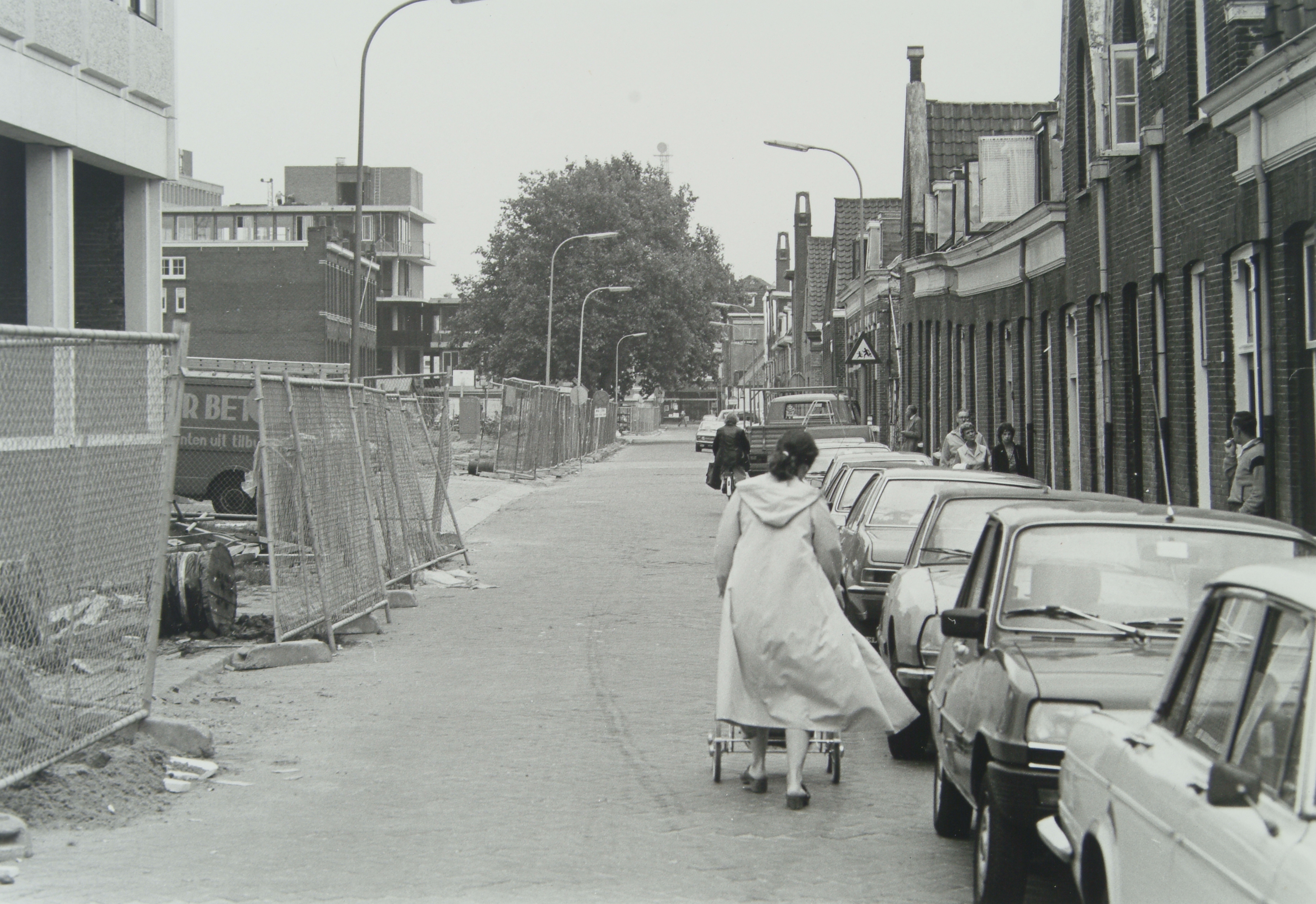 Geldelozepad richting de Spuiweg met links de bouw van de parkeergarage achter het …