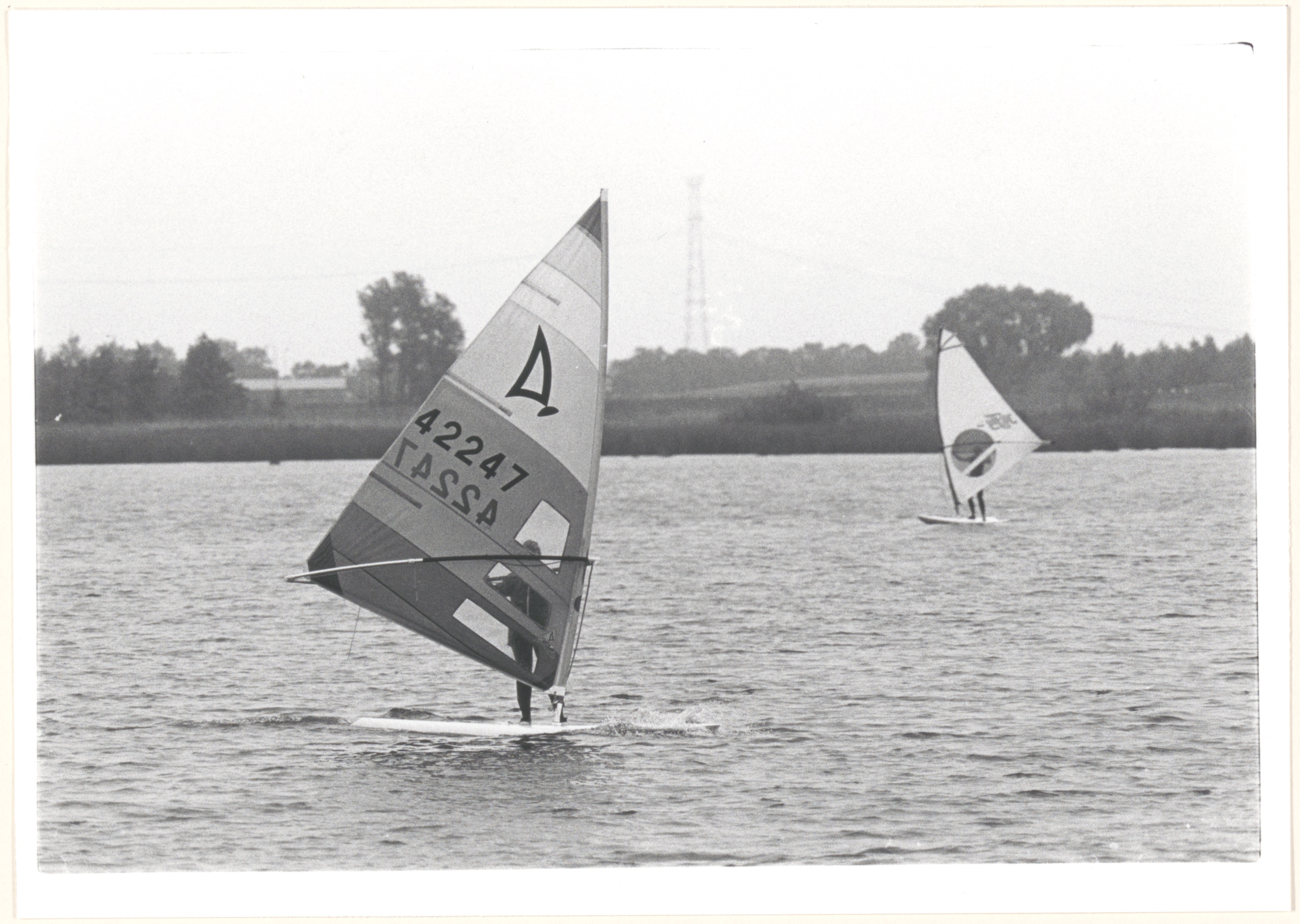 - Twee windsurfers of plankzeilers, waarschijnijk op de Nieuwe Merwede.