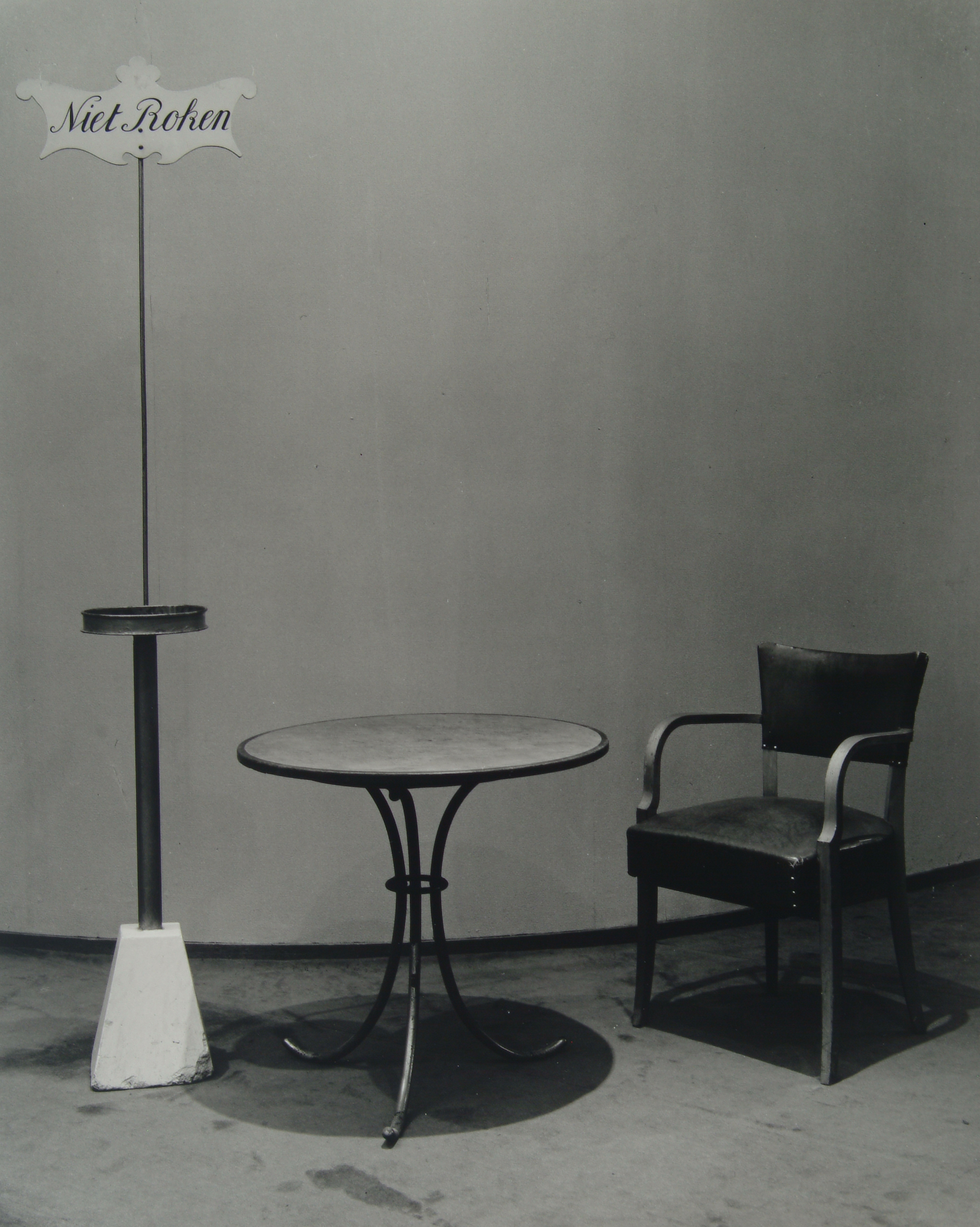 Asbak met bordje niet roken zijn van Wout van Gemert. Gewezen amtenaar bij openbare weken van de gemeente.