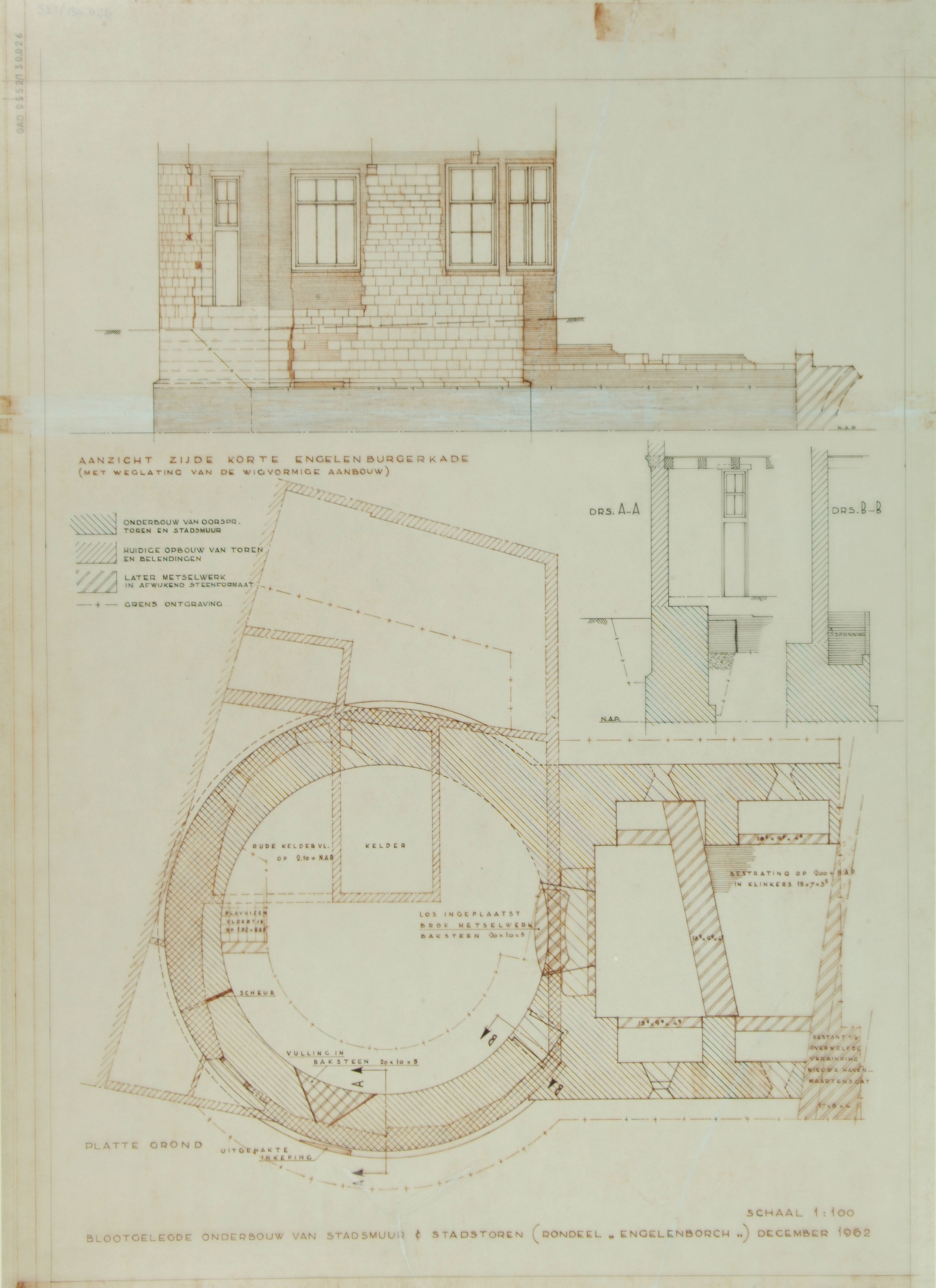 - Onderbouw en zijaanzicht van rondeel Engelenburg.