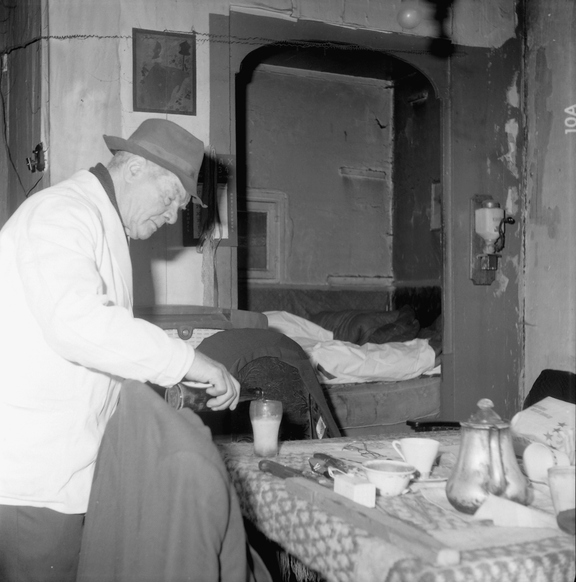 Bewoner aan het bier in Het Kruis(hof) bij de Heer Heymansuysstraat