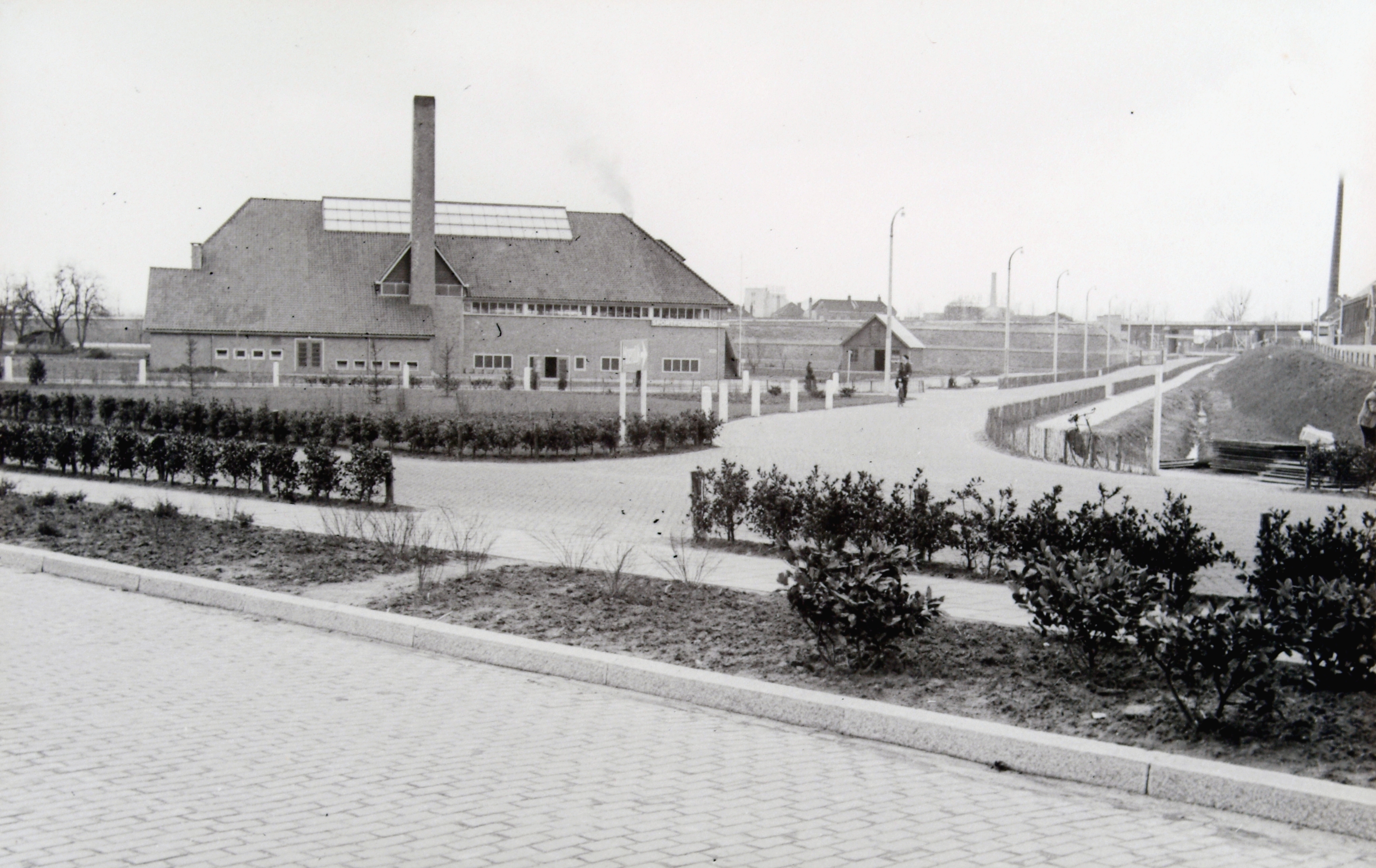 - Sportfondsenbad aan de Brandts Buysstraat gezien vanaf de Diepenbrockweg/Hugo de Grootlaan. De fietser rijdt op de Weeskinderendijk Beneden. Geheel rechts is de Weeskinderendijk Boven.