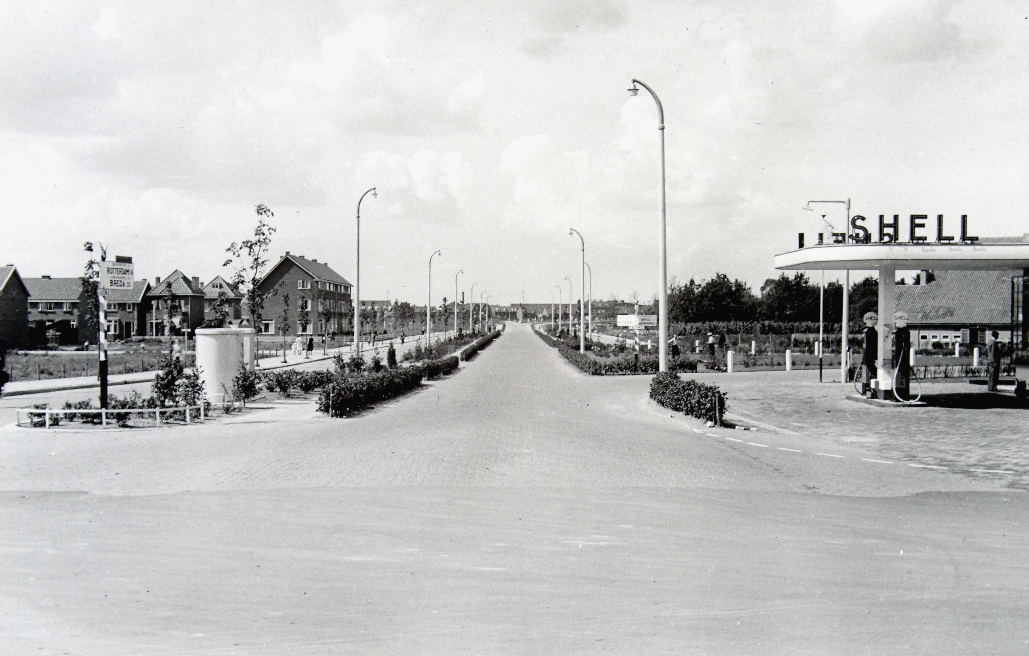- Nu is dit de rotonde op de Brouwersdijk - Hugo de Grootlaan naar Zwijndrecht. Aan de rechterkant bevindt zich nog steeds een benzinepomp