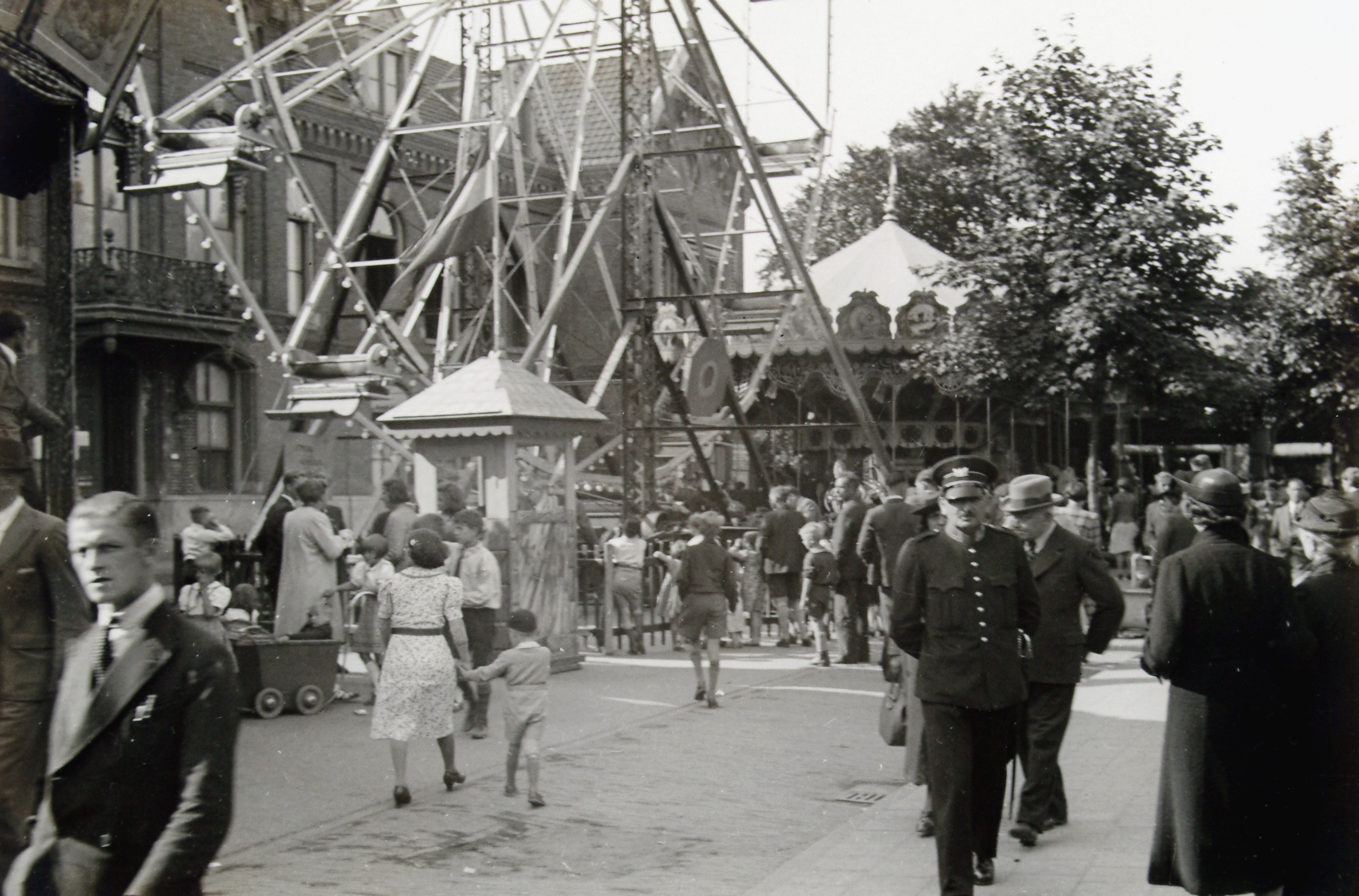 Kermis voor het oude ziekenhuis op het Beverwijcksplein in de feestweek bij de opening …