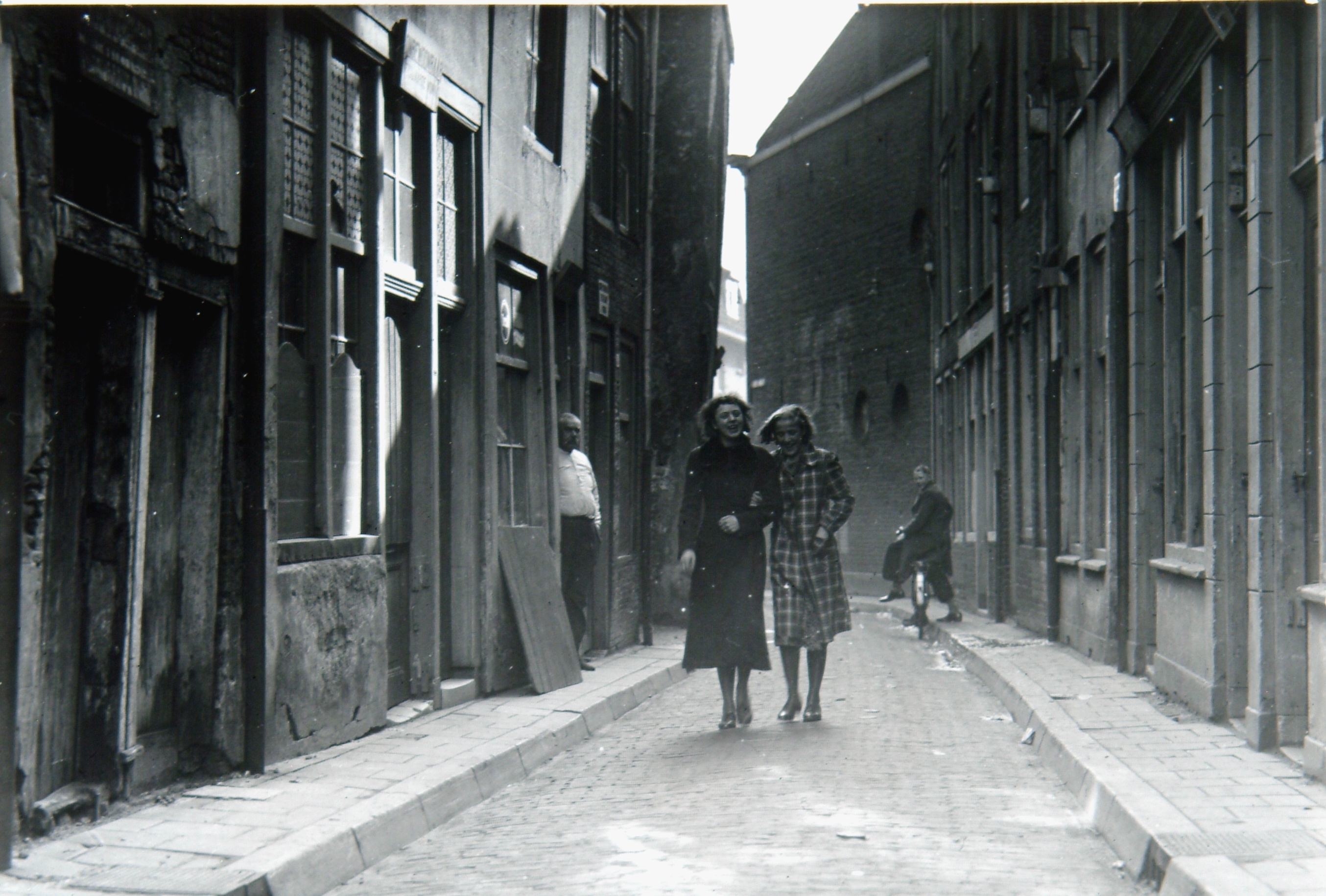 - De Torenstraat gezien in de richting van het Nieuwkerksplein. In de deuropeniing meester-sigarenmaker Cornelis Heugens.