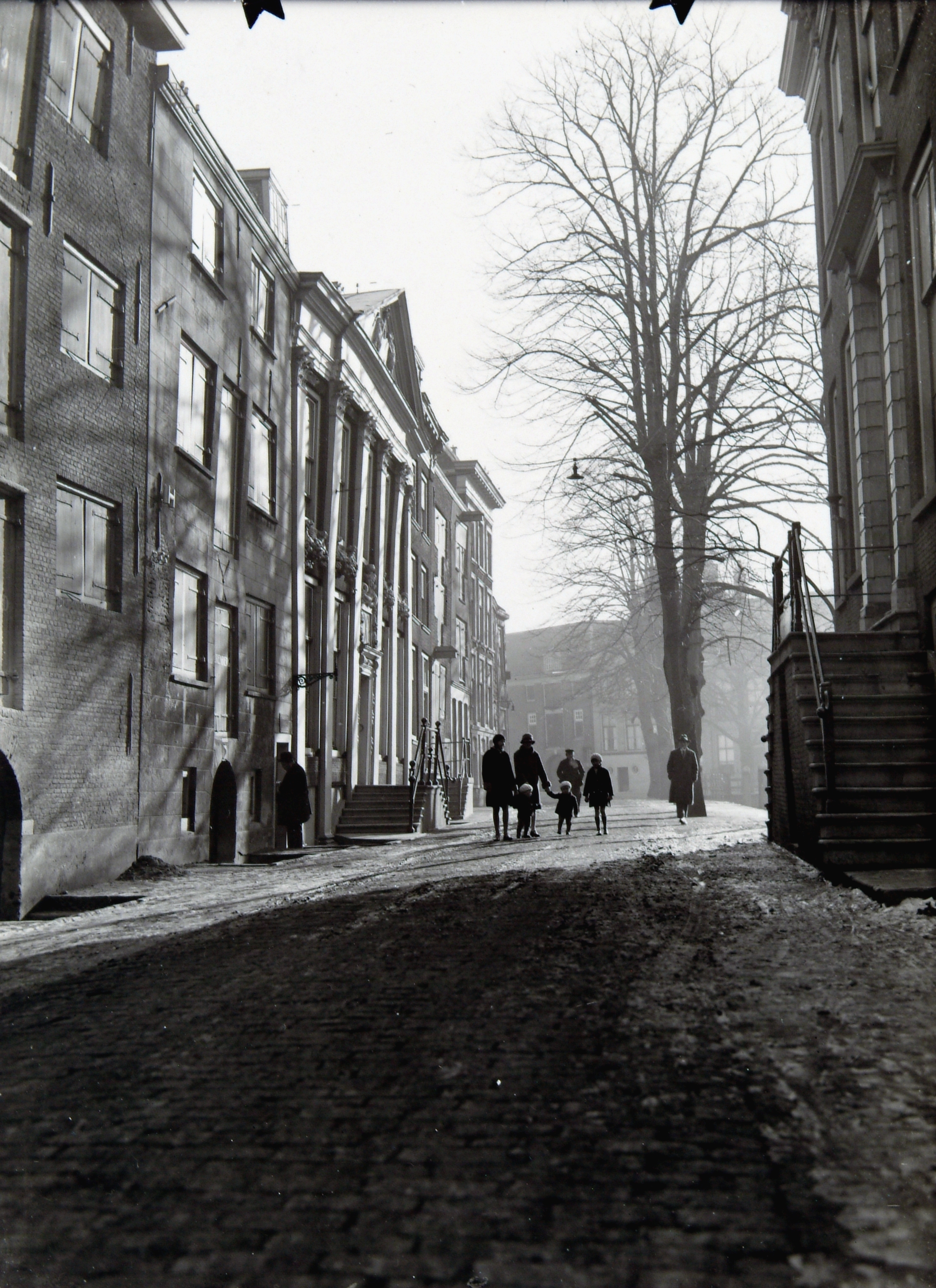 Wandelaars op de Engelenburgerkade gezien in de richting van de Houttuinen.