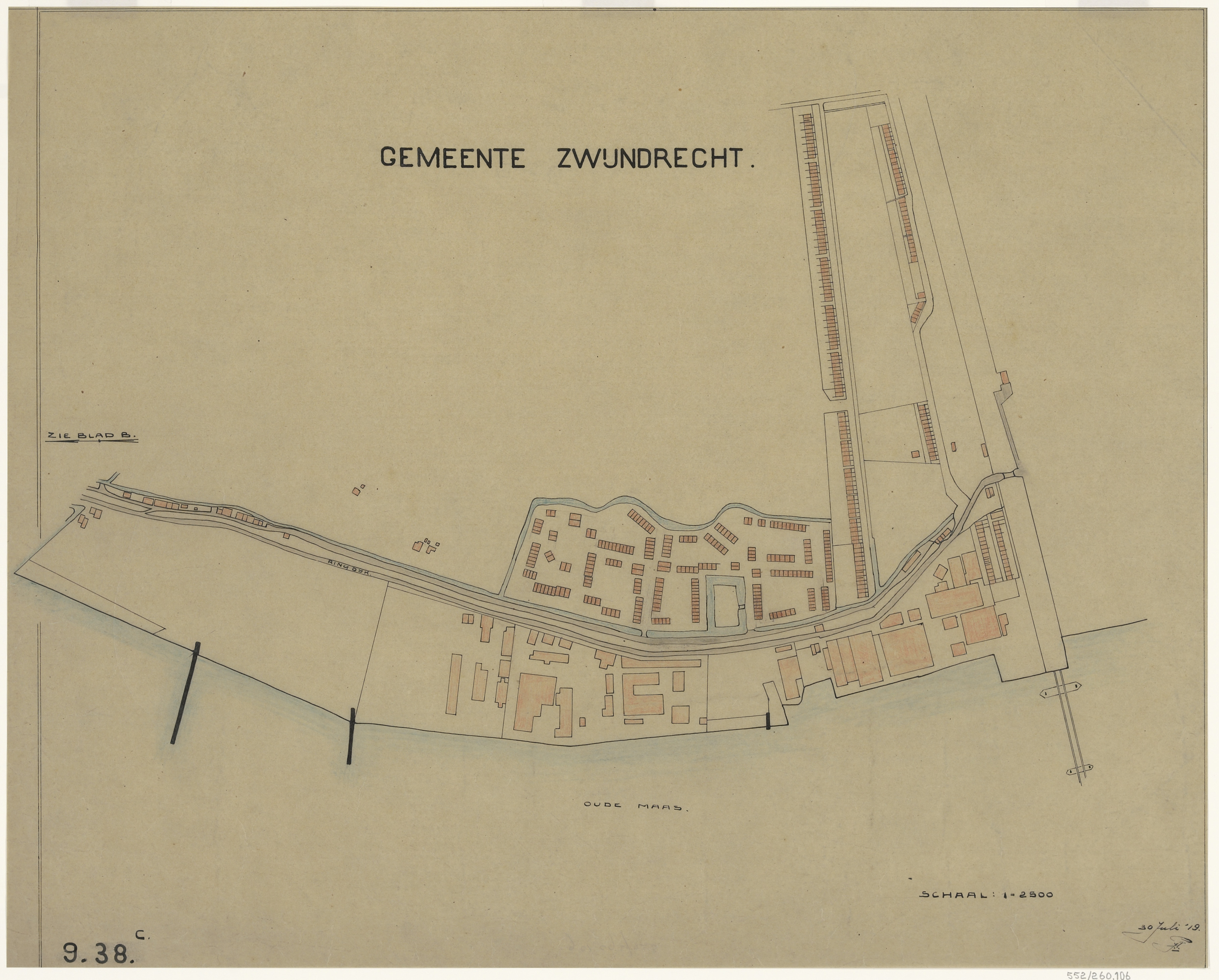 De kadastrale kaart van de gemeente Zwijndrecht.
