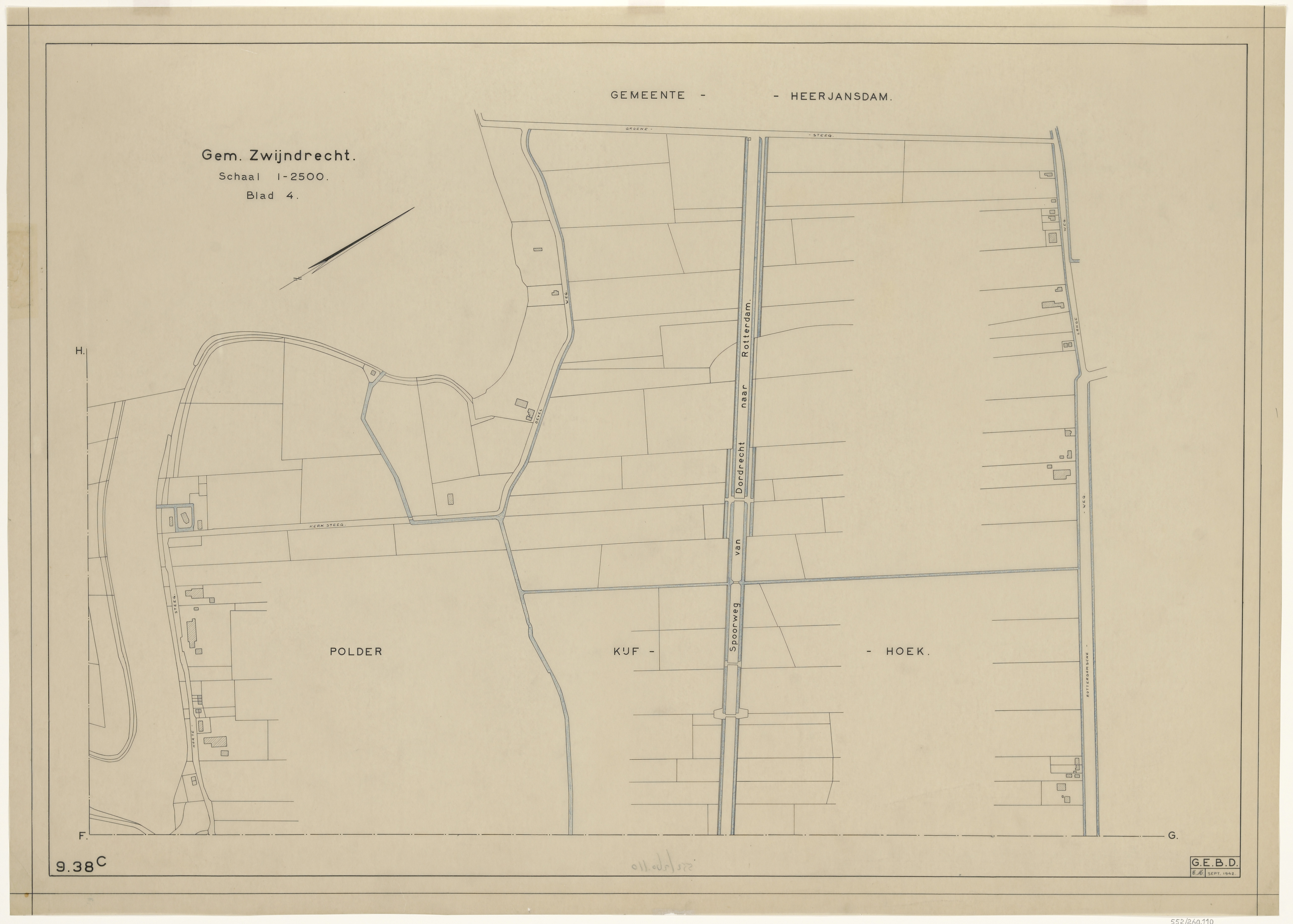 Kaart van de gemeente Zwijndrecht, betreffende polder Kijfhoek en gemeente Heerjansdam.