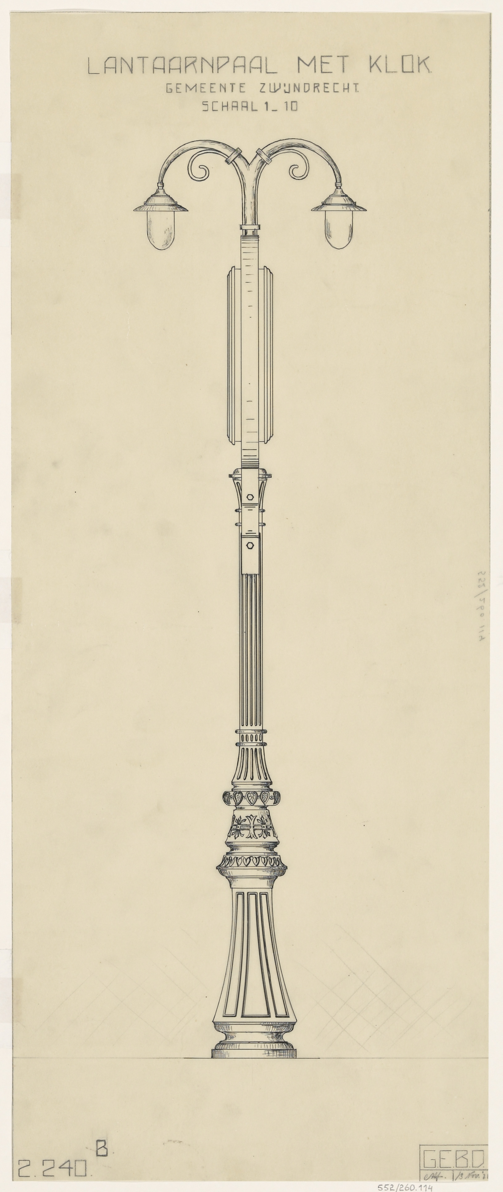 Het ontwerp van een elektrische lantaarn met klok voor de gemeente Zwijndrecht.