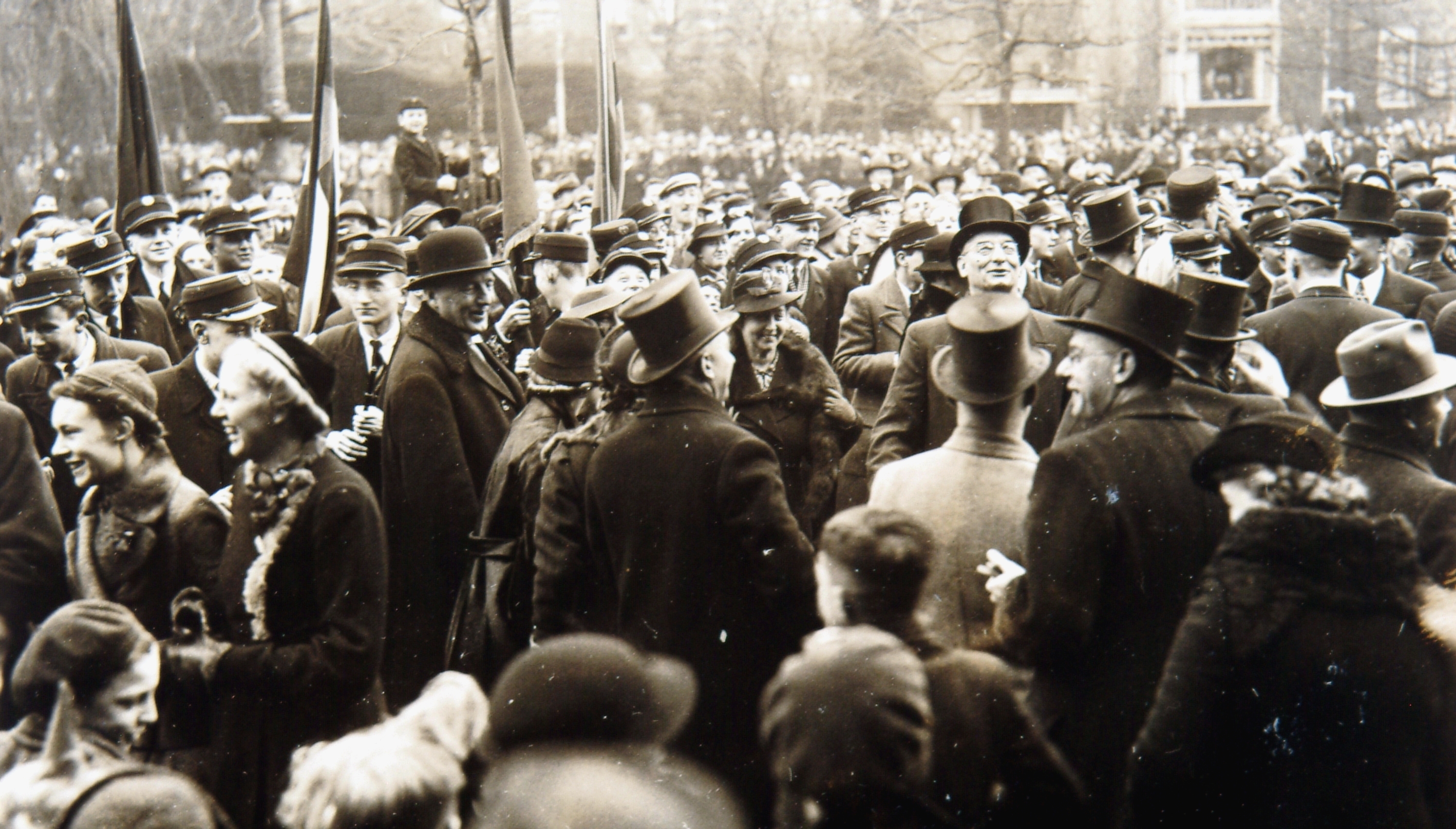 Hossende autoriteiten na de kinderaubade op het Beverwijcksplein. De burgemeester en de …