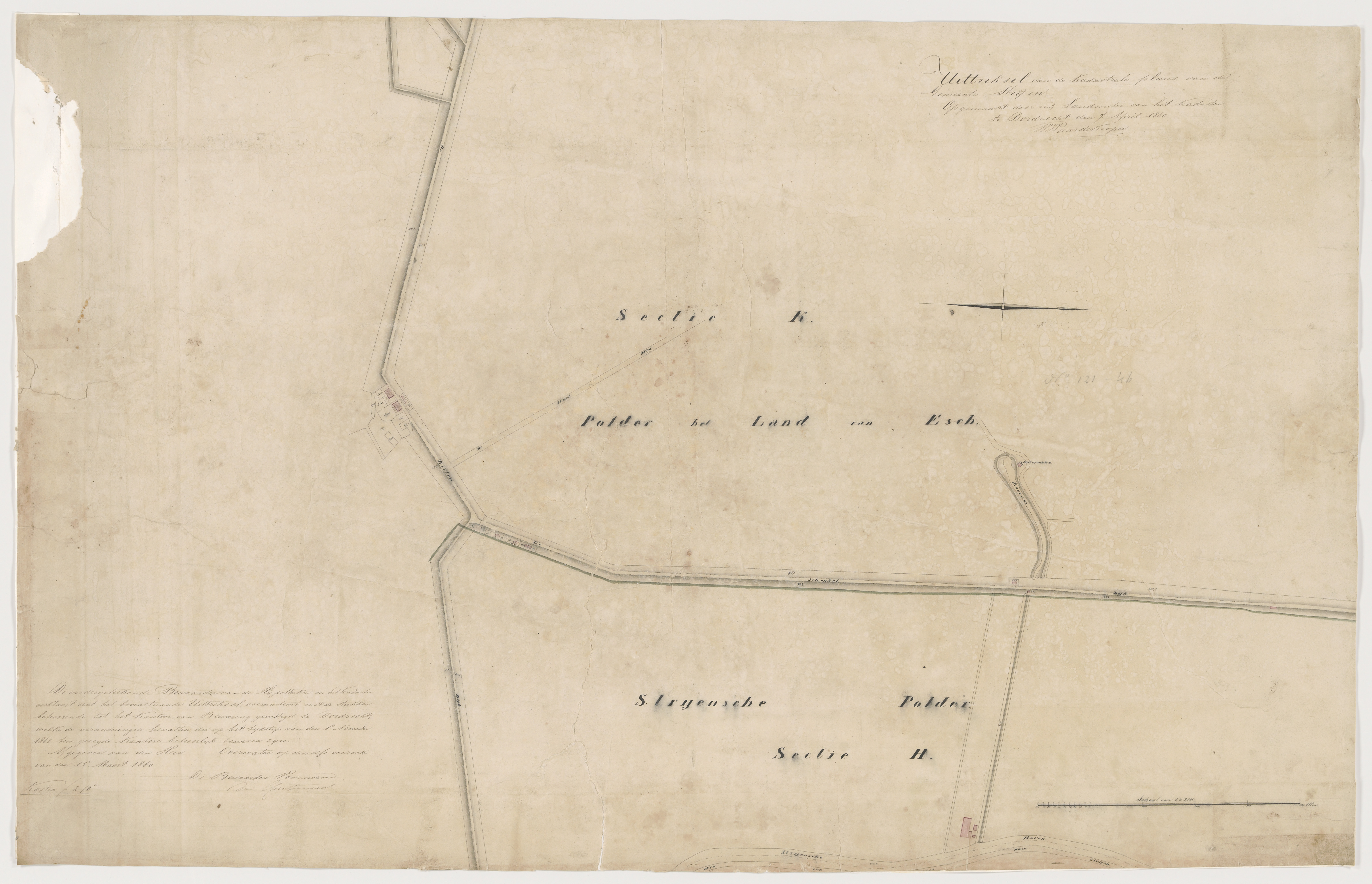 - Uittreksel uit het kadastrale plan der gemeente Strijen, sectie K en H gedeeltelijk betreffende de polders het Land van Essche en de Strijensche Polder, 1860